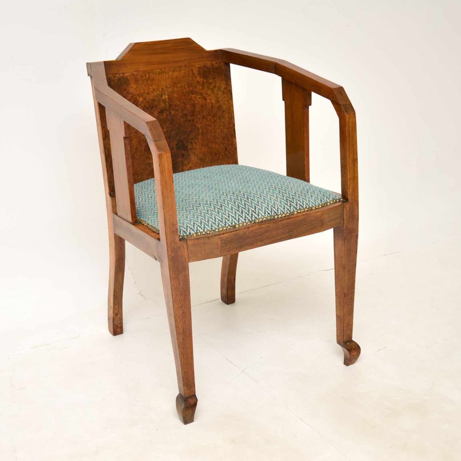 Art Deco Period Burr Walnut Desk Chair / Armchair