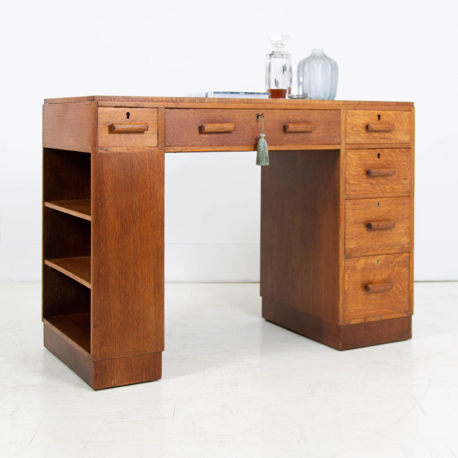 Art Deco Period Modernist Oak Pedestal Desk c.1930