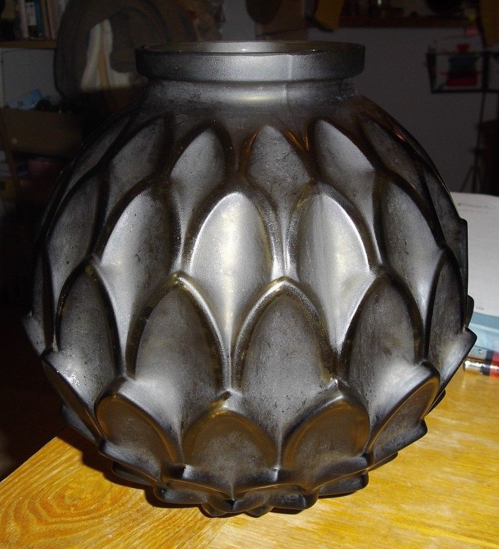 Art Deco Pierre D'Avesn Glass Fir Cone Artichoke Vase-Lalique Style
