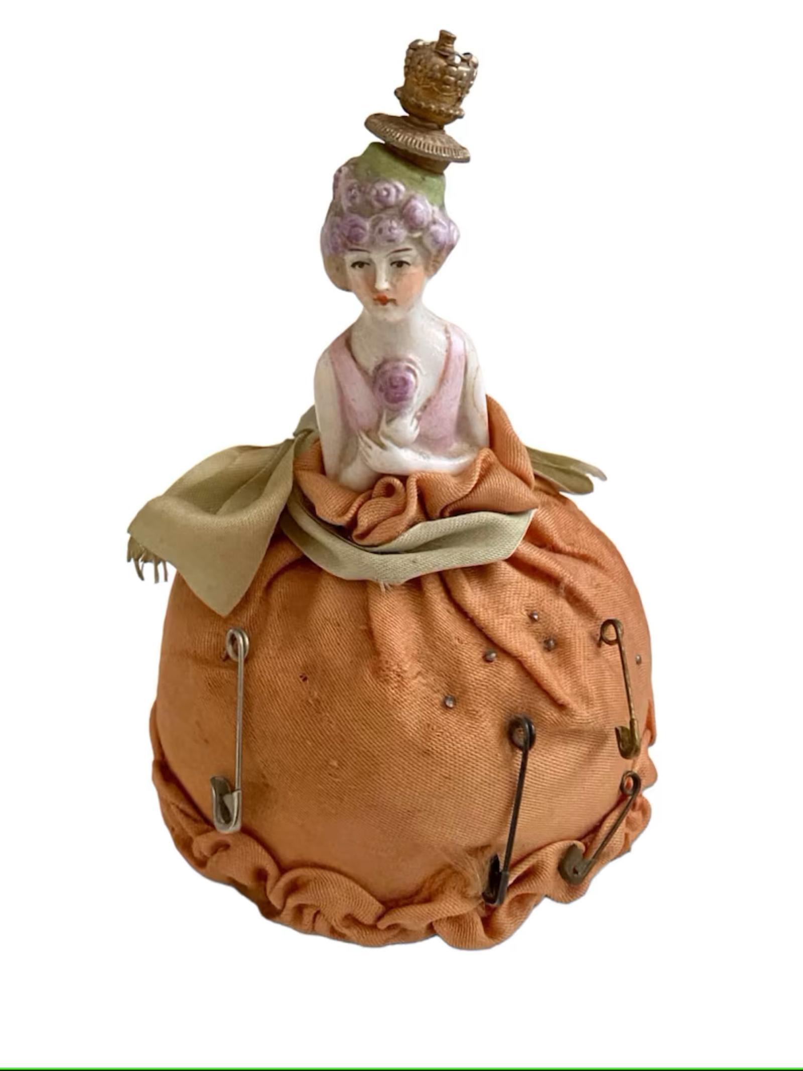 Art Deco Pin Cushion Half Doll Crown Top Perfume Scent Bottle German Porcelain 1920s
