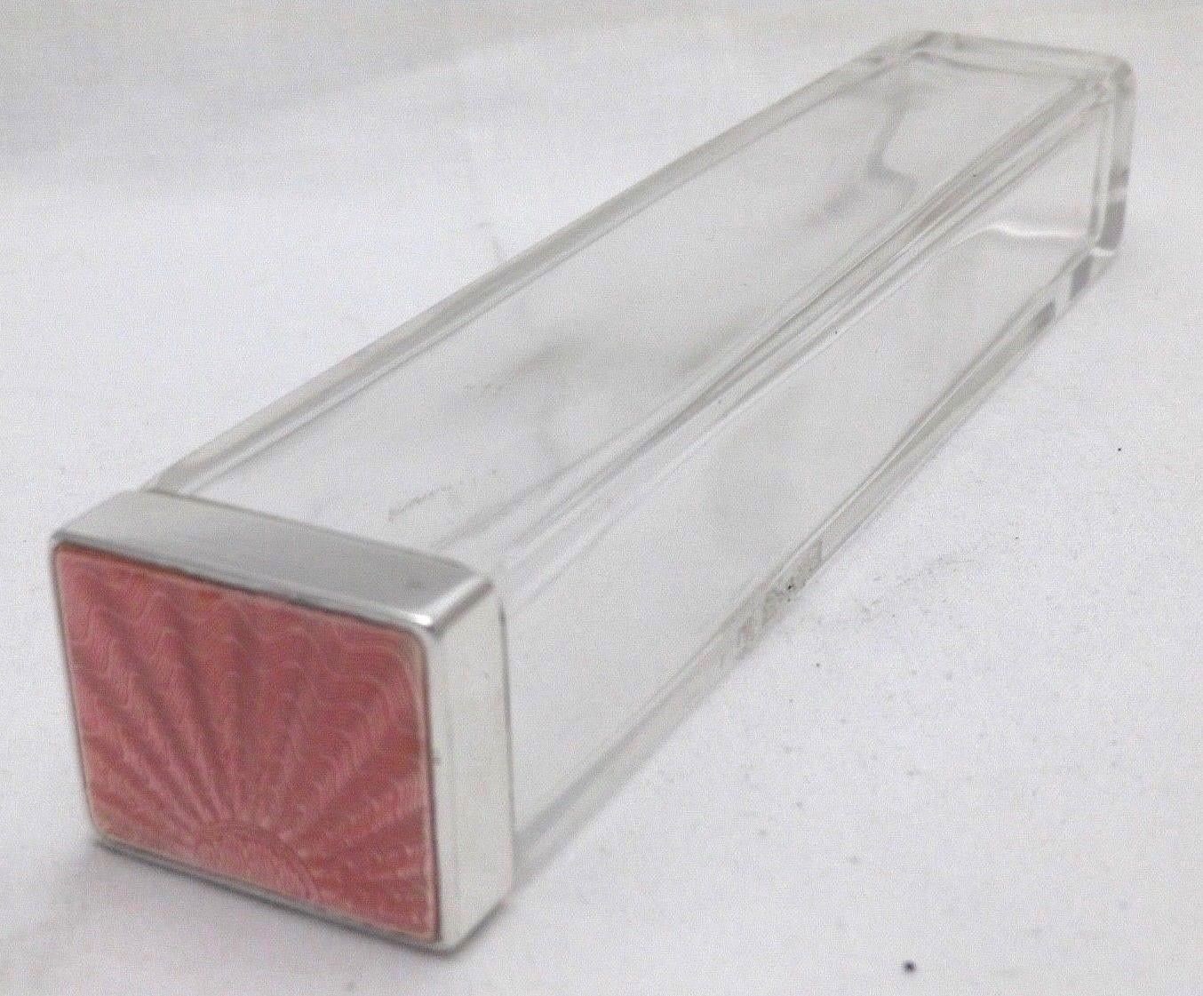 Art Deco Pink Enamelled Guilloche Silver Topped Hat Pin Jar