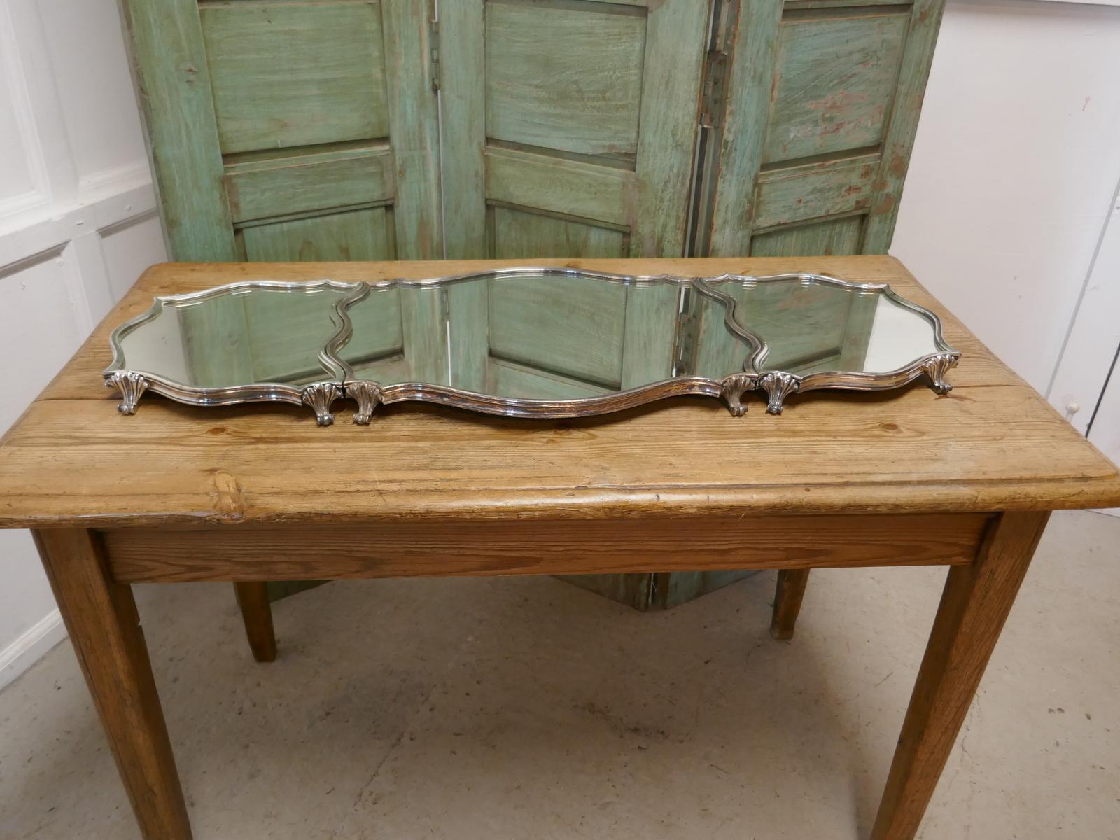 Art Deco Plateau de Buffet, French Mirrored Silver Sideboard Trio Tray