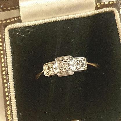 Art Deco Platinum Set Diamond Geometric Starburst Design on 9ct Gold Ring