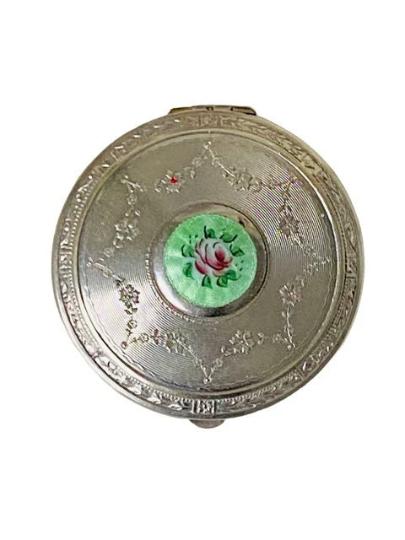 Art Deco Powder Compact with Guilloche Enamel Plaque c.1930