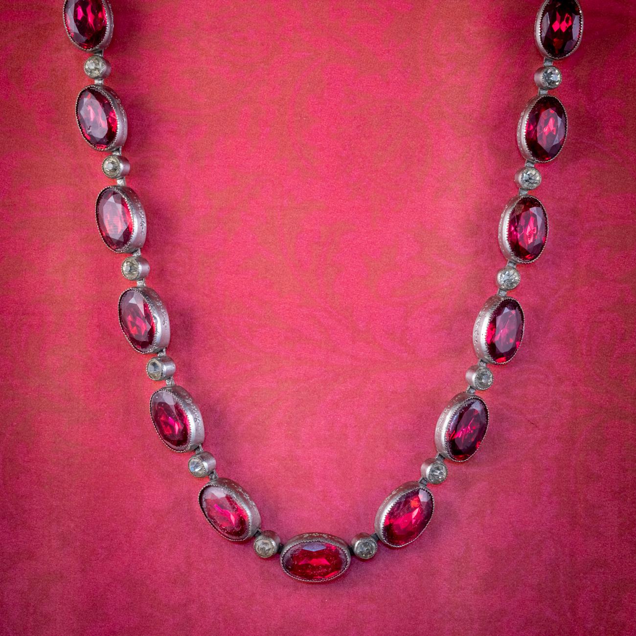 Art Deco Red Paste Riviere Necklace Silver c.1920