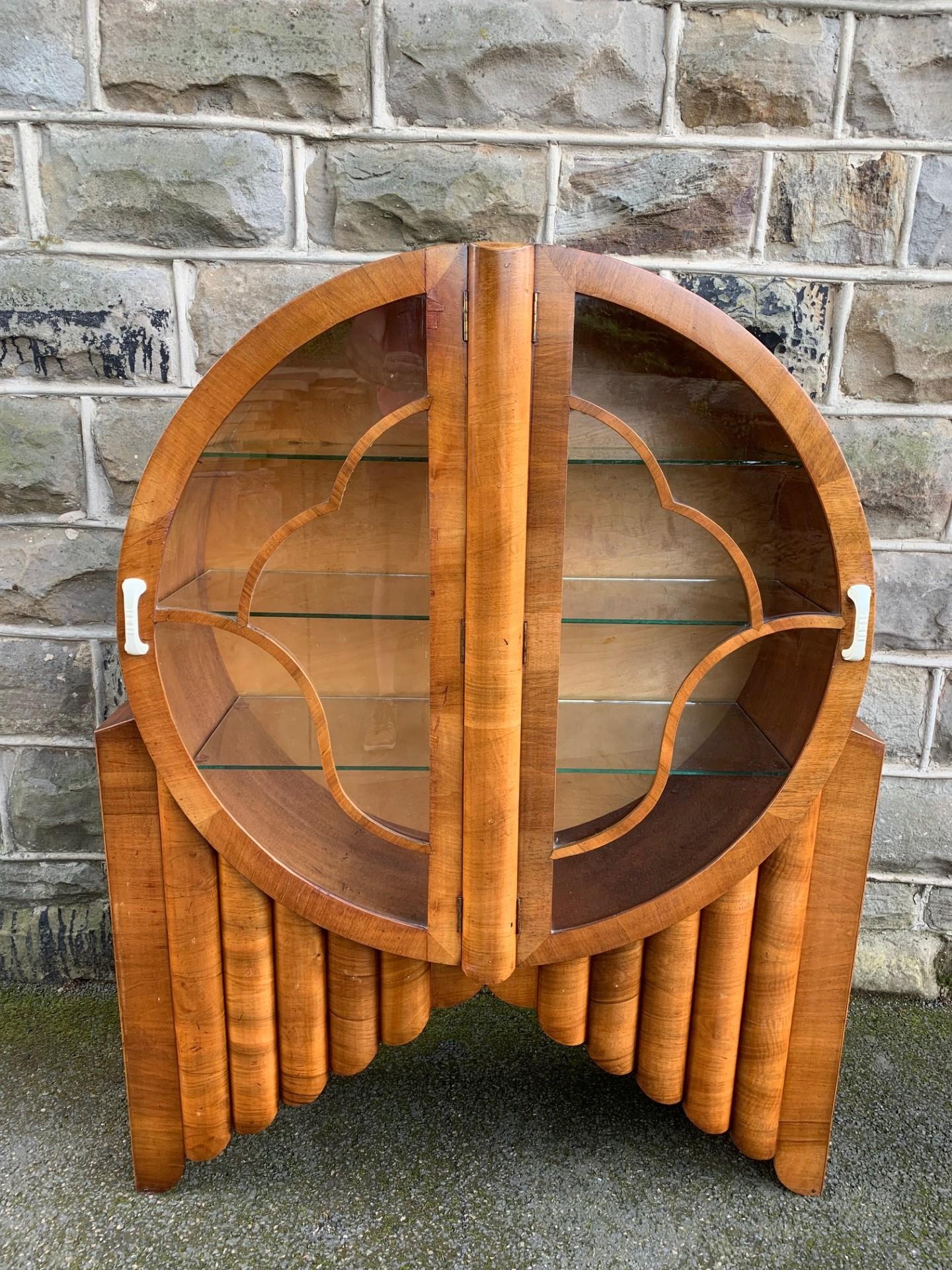 Art Deco Round "Rocket" Walnut Display Cabinet