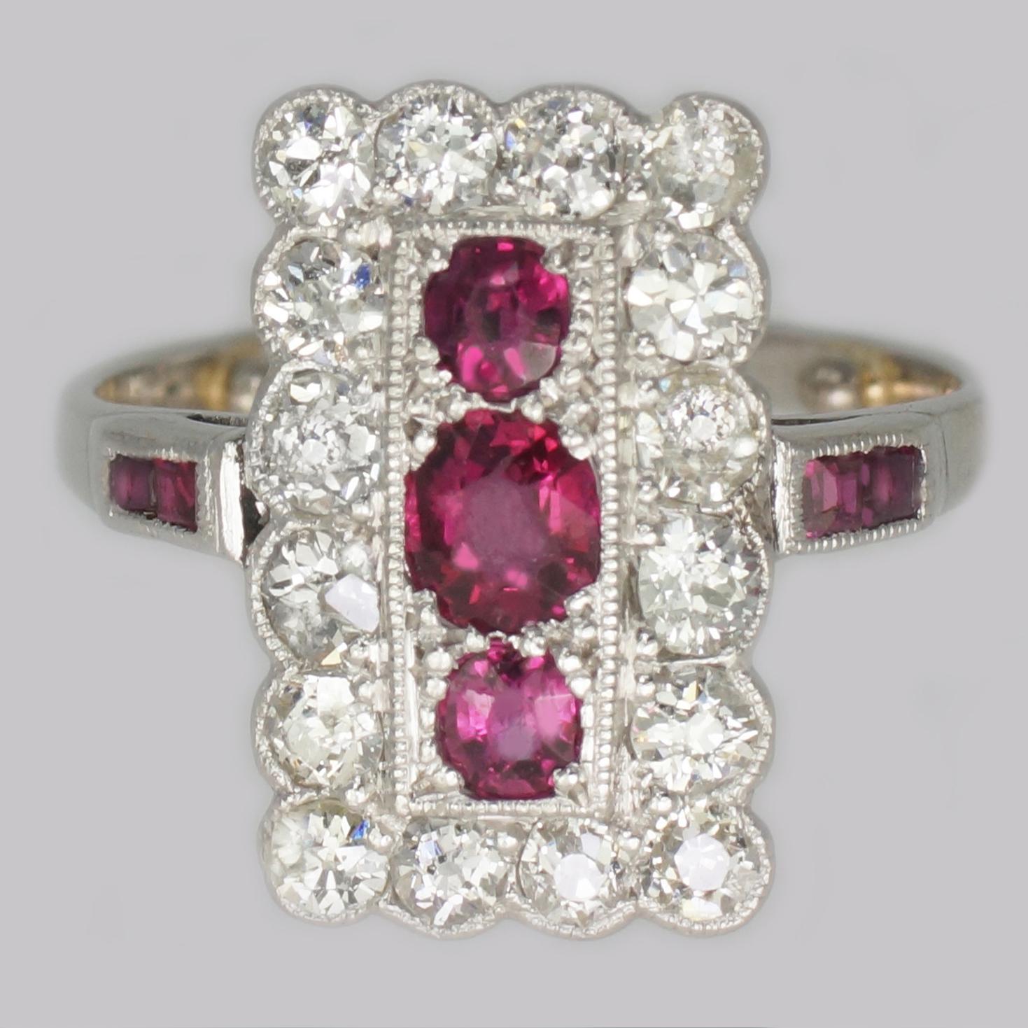 Art Deco Ruby & Diamond Plaque Ring Antique Platinum Edwardian Ring Circa 1910