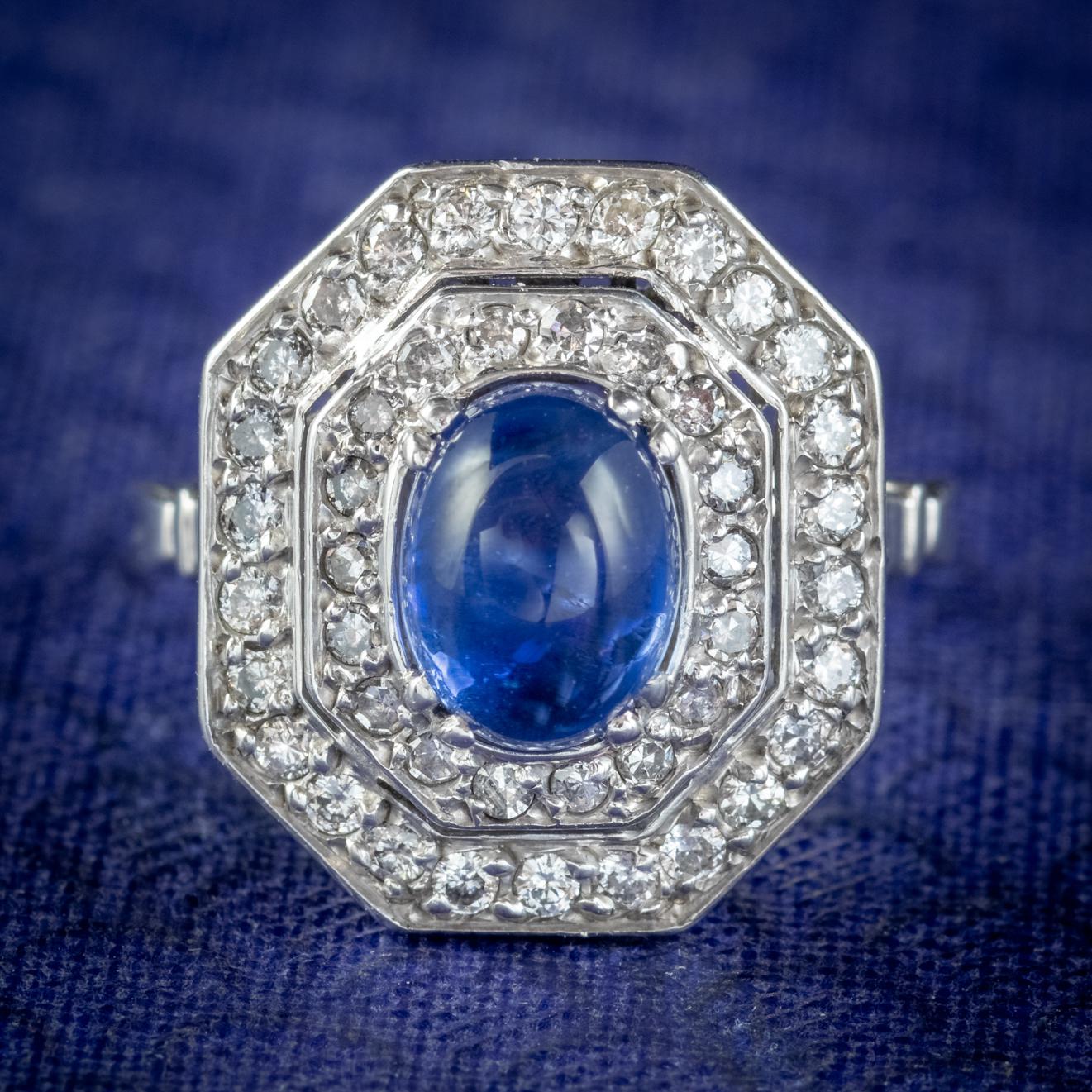 Art Deco Sapphire Diamond Cluster Ring 18ct Gold 1.50ct Sapphire 1.69ct Diamond c.1930