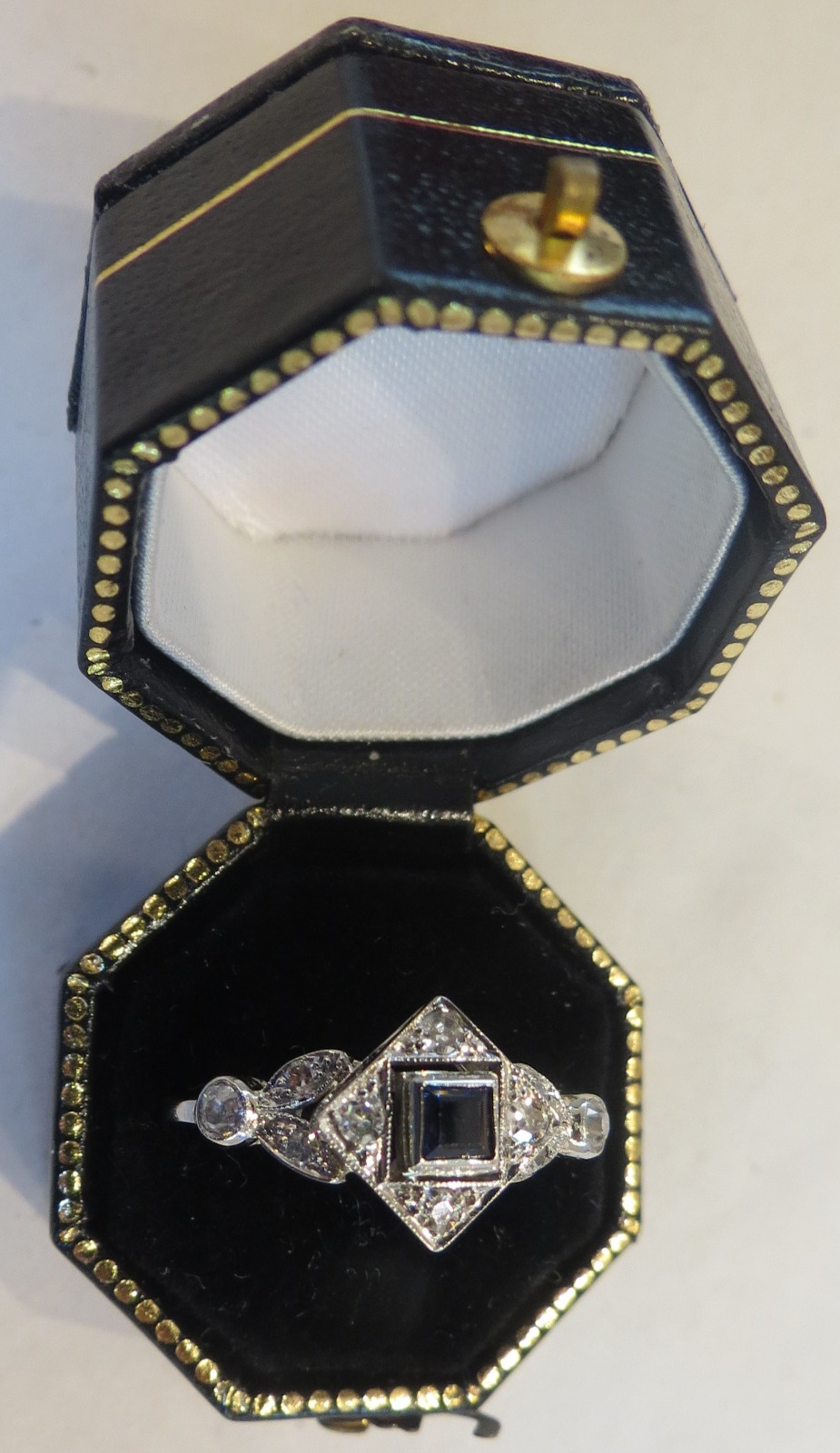 Art Deco Sapphire, Diamond & Platinum Ring (1 of 15)