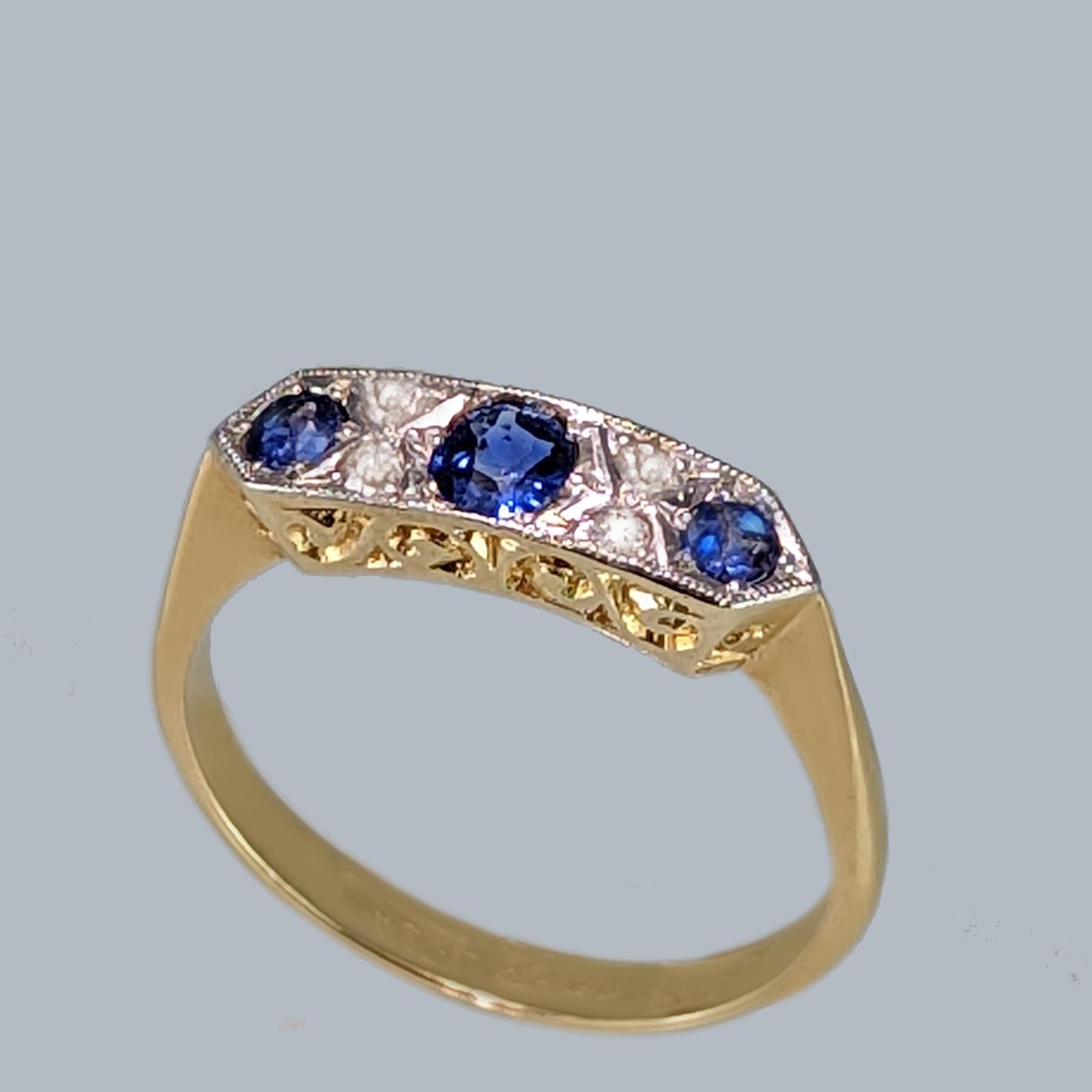Art Deco Sapphire Diamond Ring 18ct Gold Plat Vintage 1930s Ring by W H Tandy (1 of 7)