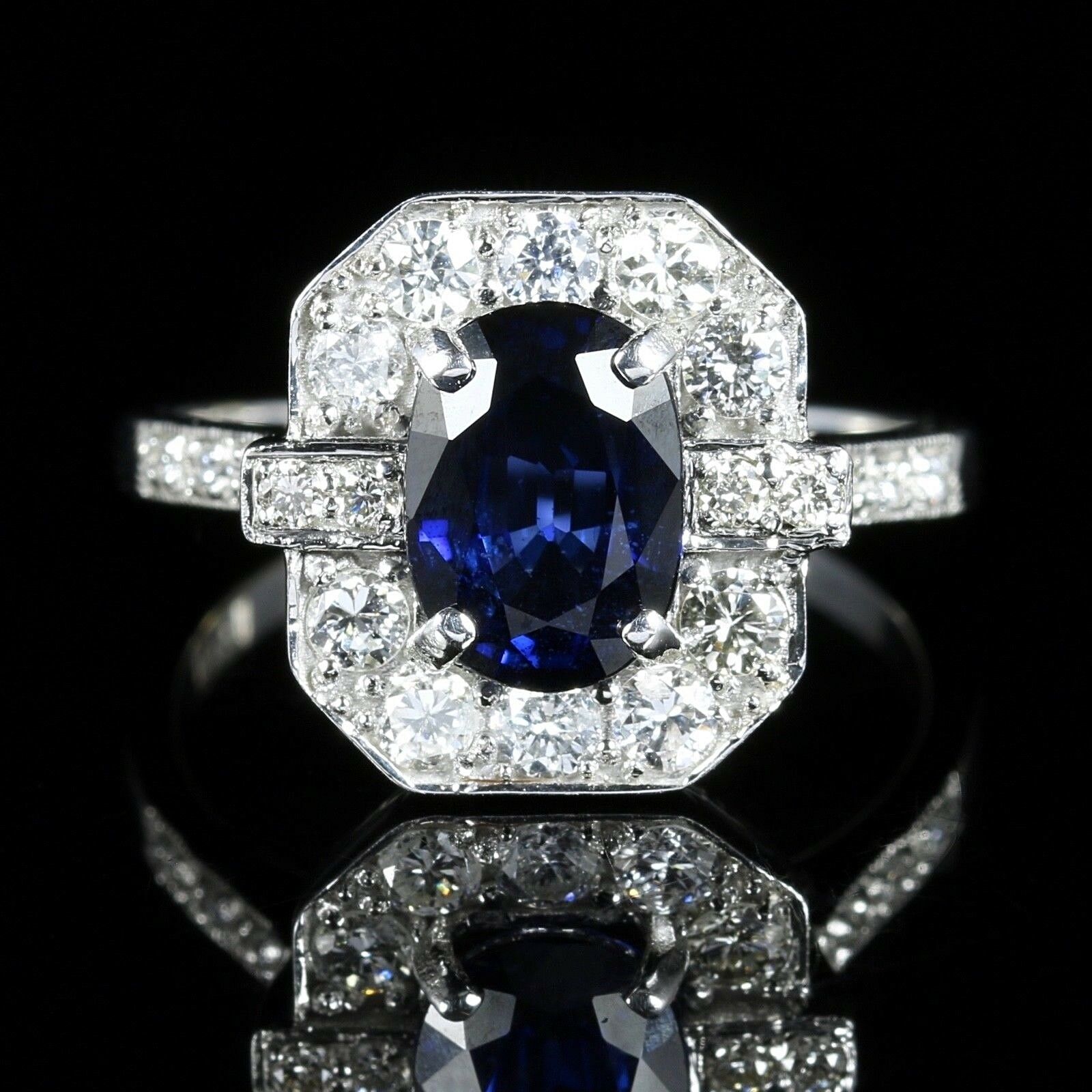 Art Deco Sapphire Diamond Ring 18ct White Gold
