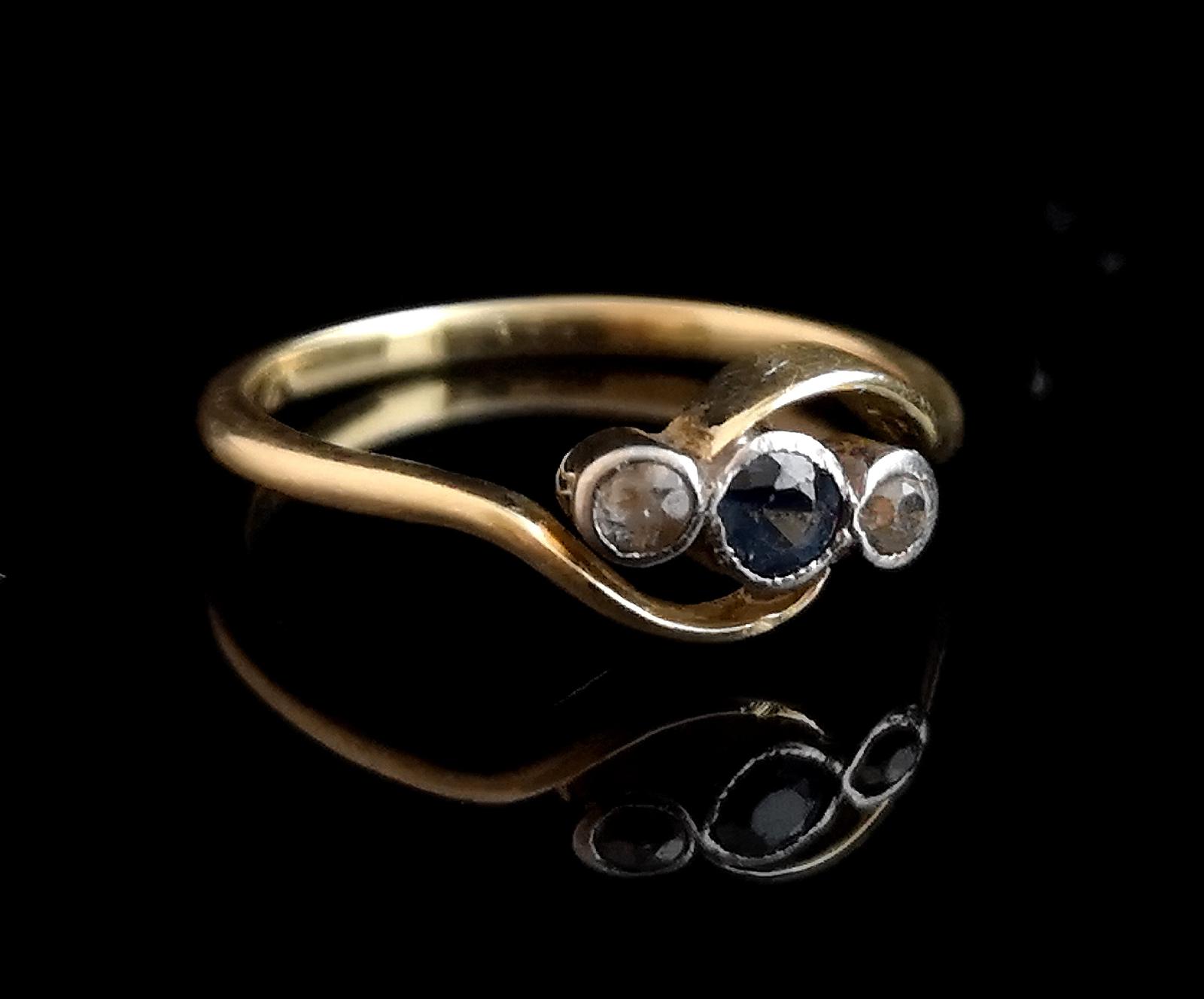 Art Deco Sapphire & Diamond trilogy ring, 18ct gold