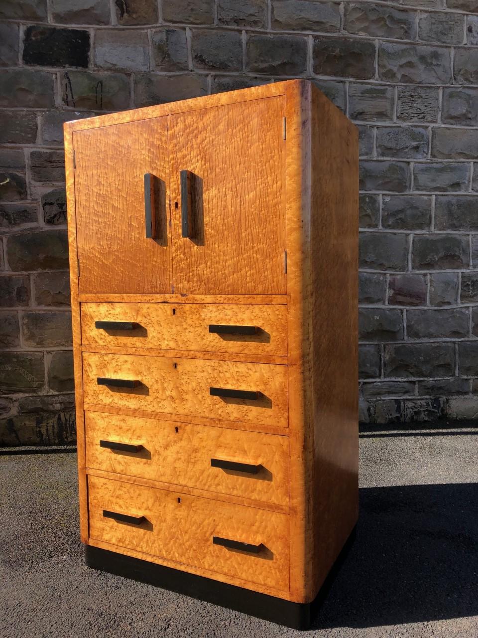 Art Deco Satin Birch Tallboy Chest of Drawers