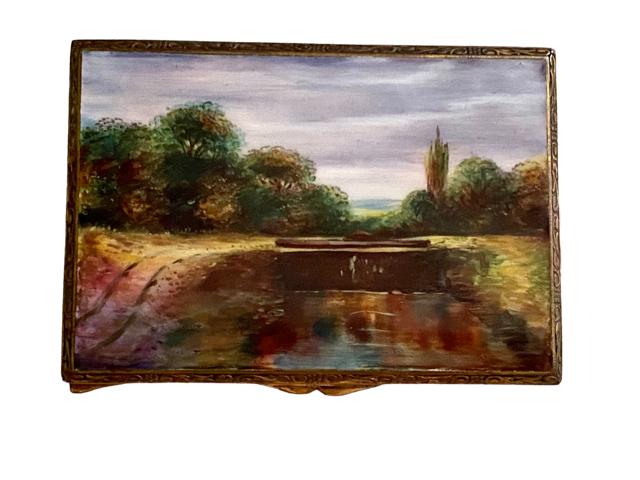 Art Deco Scenic Hand Painted Enamel Powder Compact / Card Case c.1920