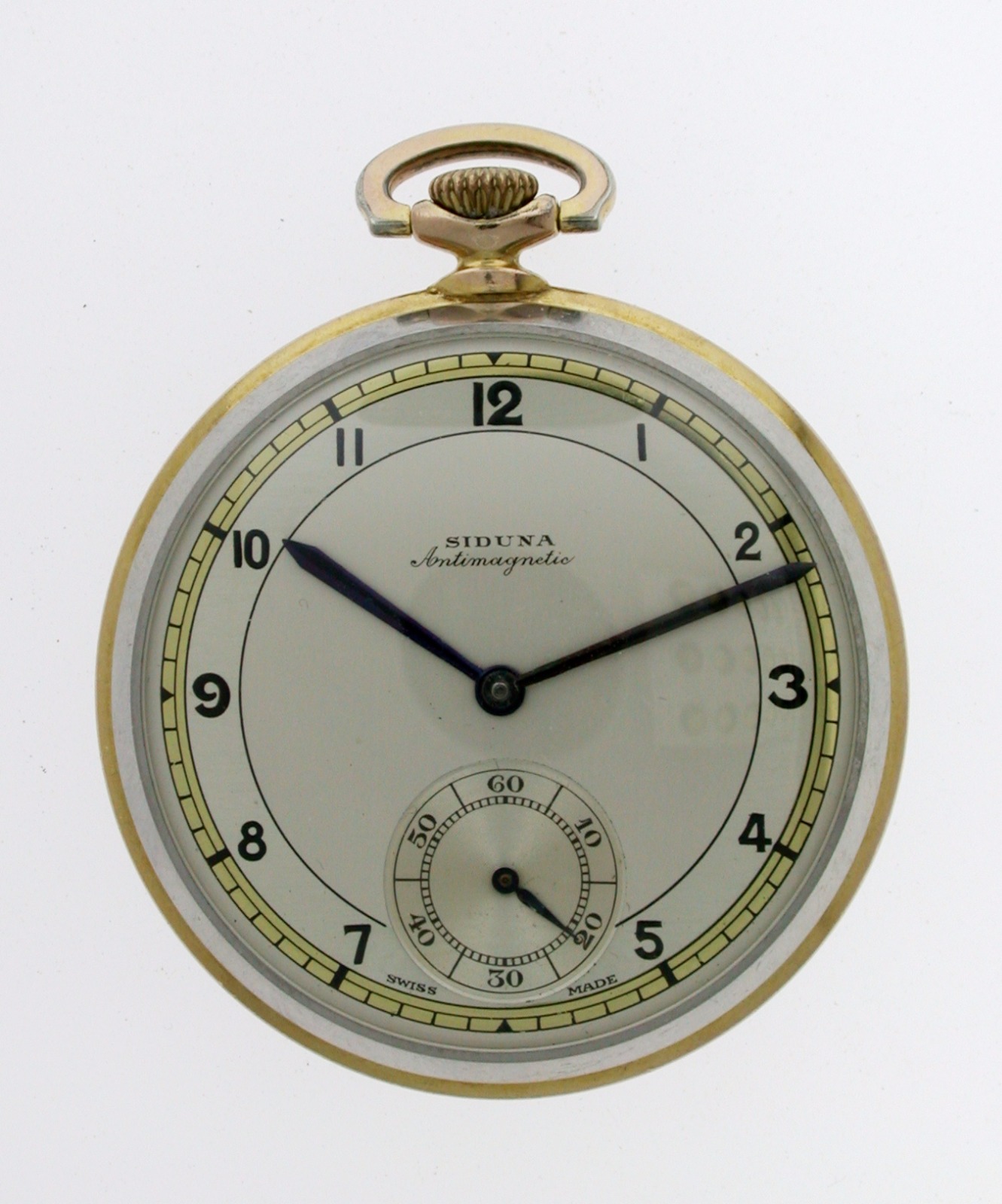 Art Deco SIDUNA Gold Filled & Steel Open Face Pocket Watch Swiss 1900 with Gold Filled Chain (1 of 1)