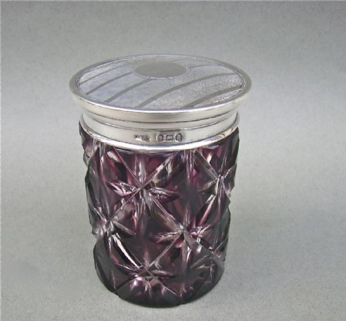 Art Deco Silver & Amethyst Glass Dressing Table Jar by DM, Birmingham 1926