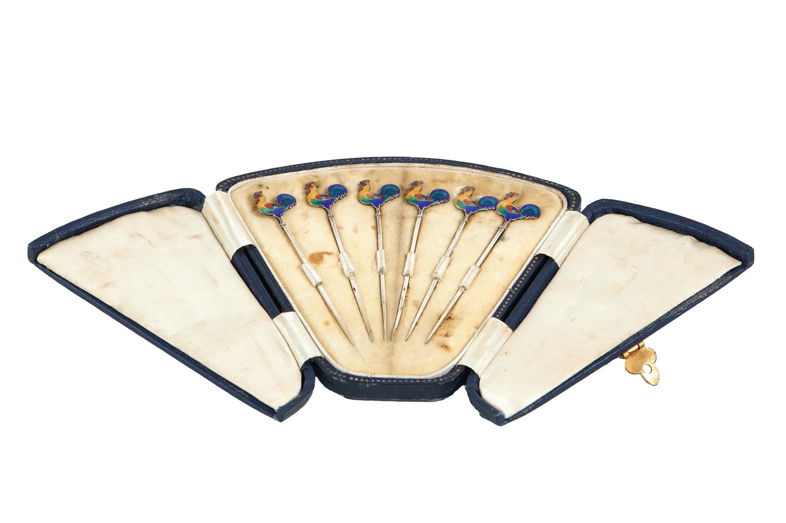 Art Deco Silver & Enamel Cockerel Cocktail Sticks (1 of 6)