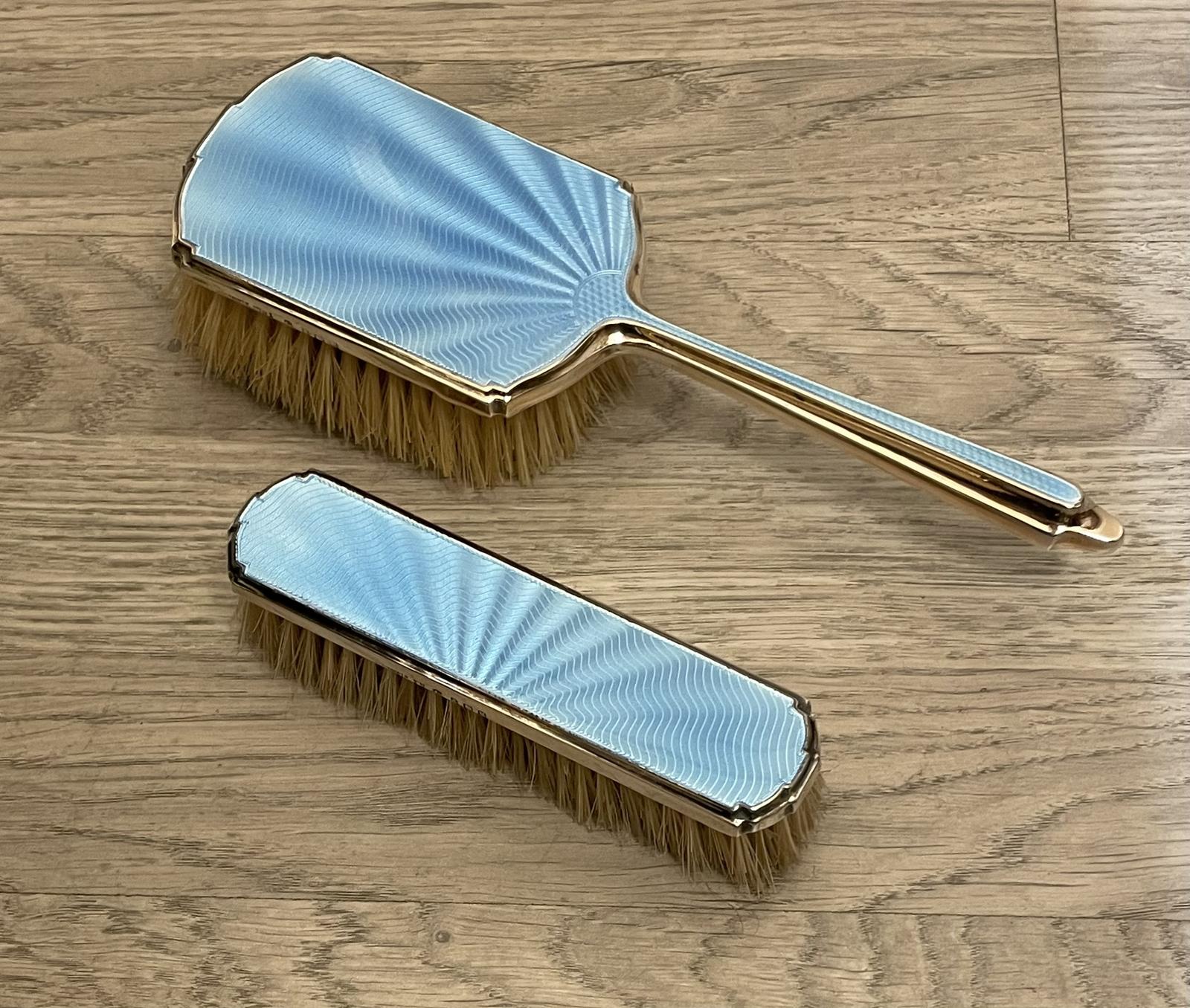 Art Deco Silver Gilt & Enamel Brush Set (1 of 3)