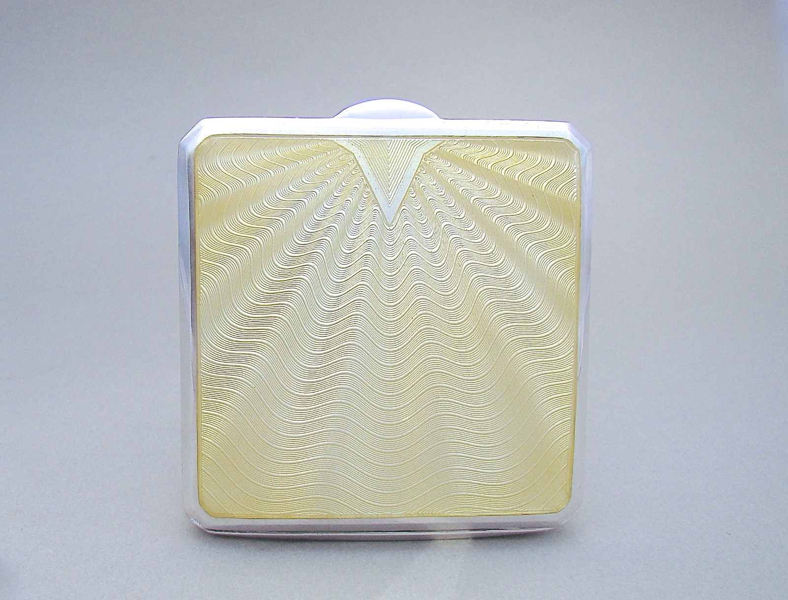 Art Deco Silver & Guilloche Enamel Compact by the Goldsmiths & Silversmiths Company, London 1938