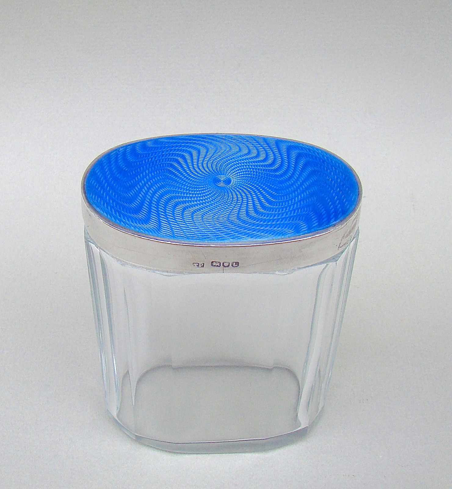 Art Deco Silver & Guilloche Enamel Dressing Table Jar by Thomas Perry, London 1946