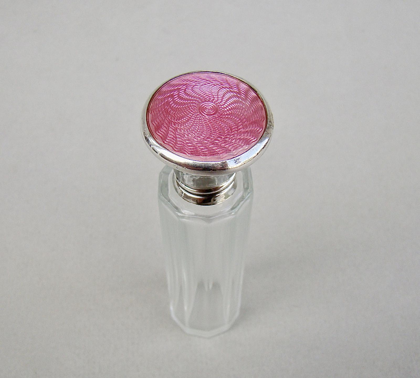 Art Deco Silver & Guilloche Enamel Scent Bottle by Henry Clifford Davis, Birmingham 1925