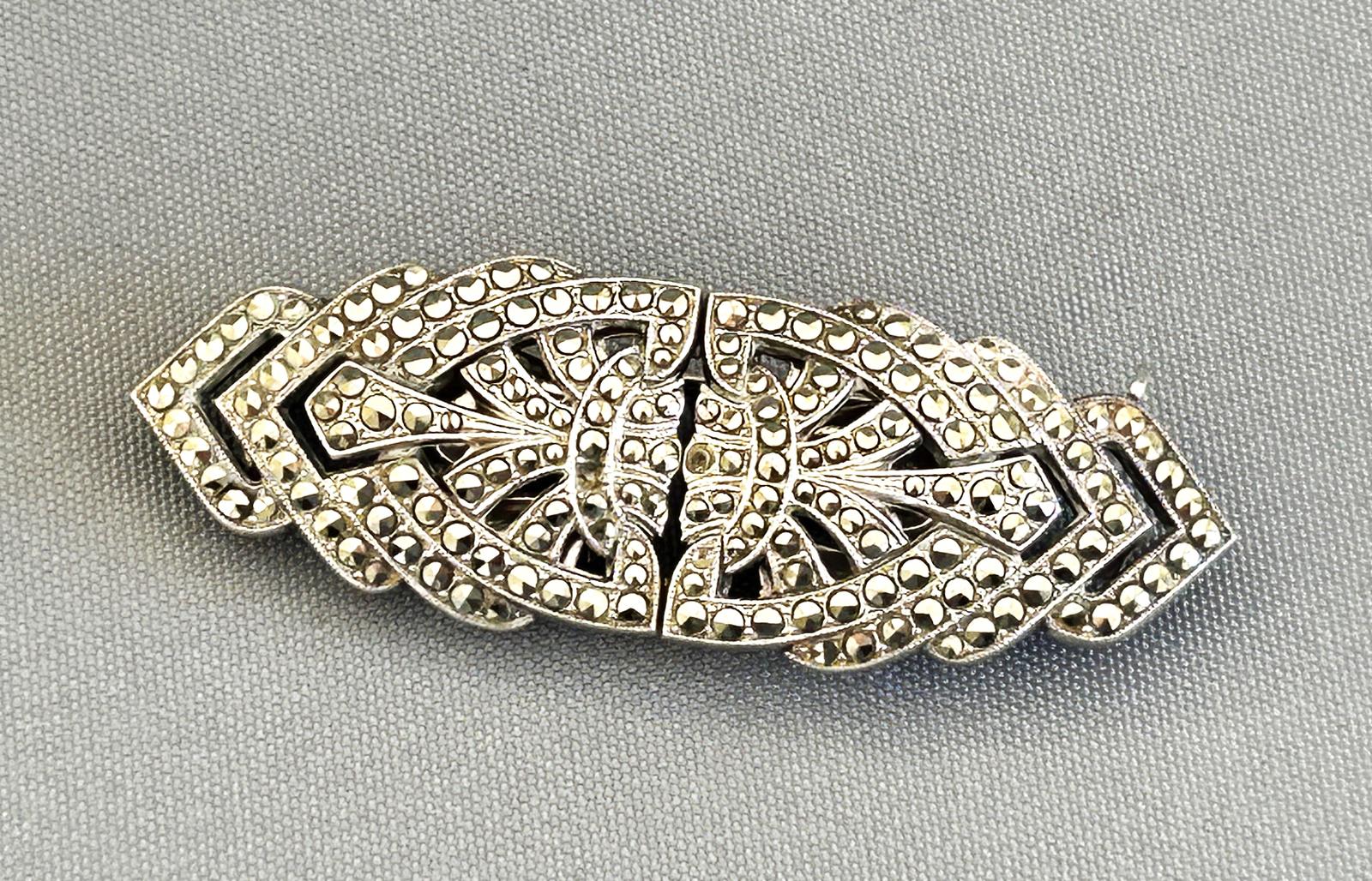 Art Deco Silver & Marcasite Duette Dress Clip (1 of 7)