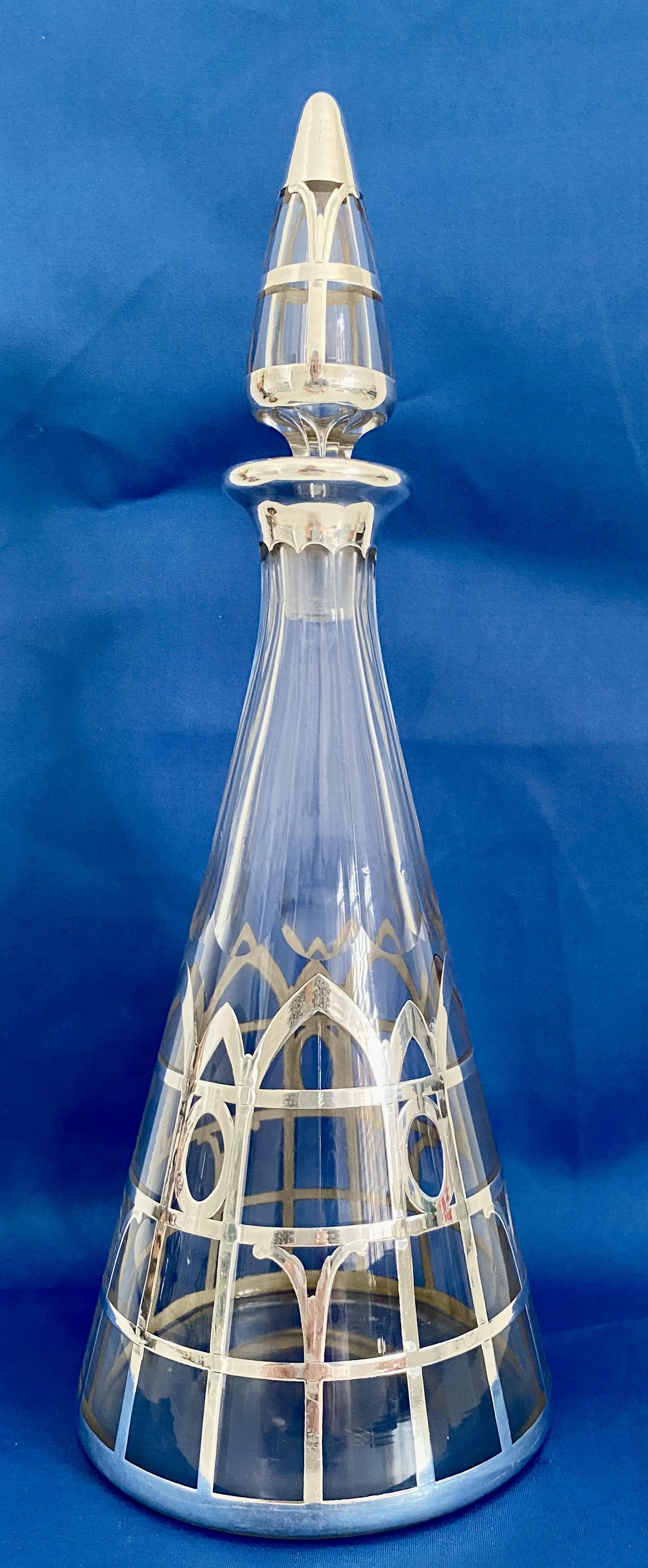 Art Deco Silver Overlaid Conical Decanter c.1930