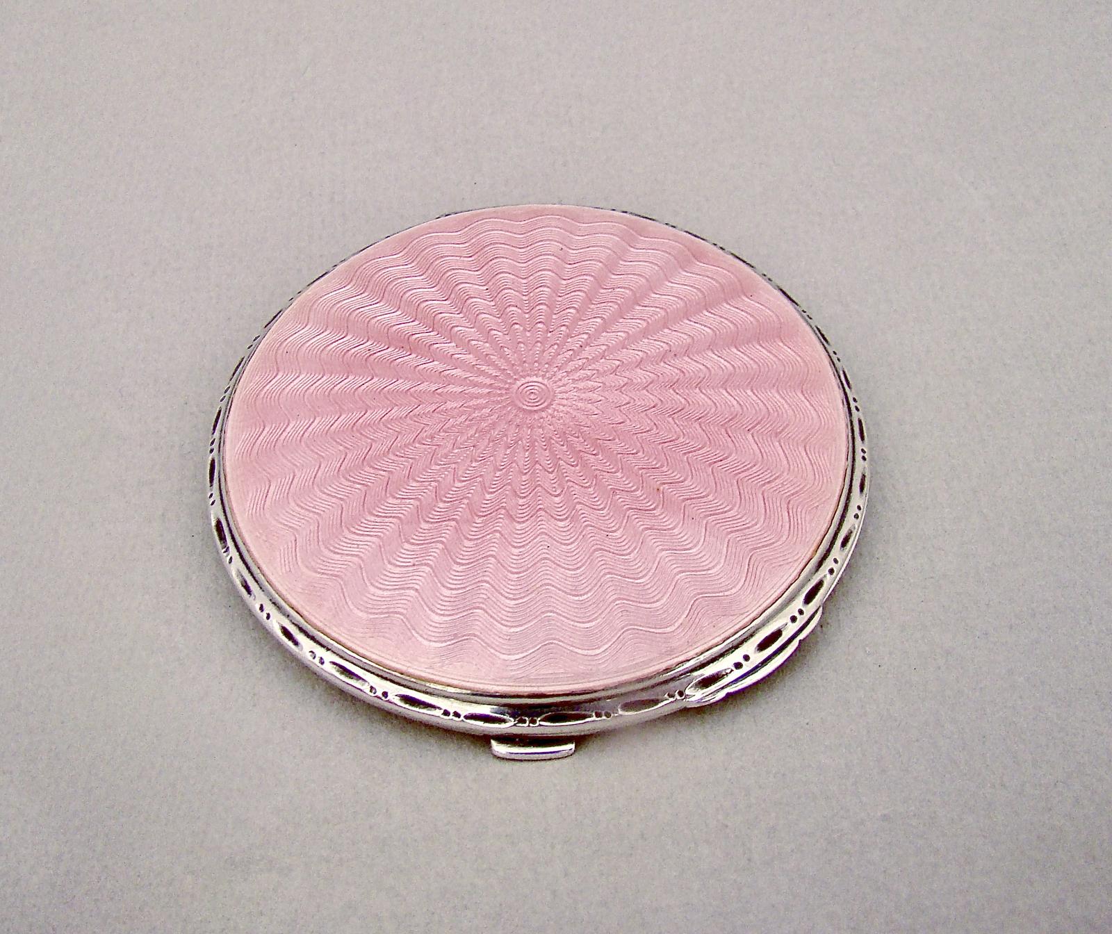 Art Deco Silver & Pink Guilloche Enamel Compact by Crisford & Norris, Birmingham 1935
