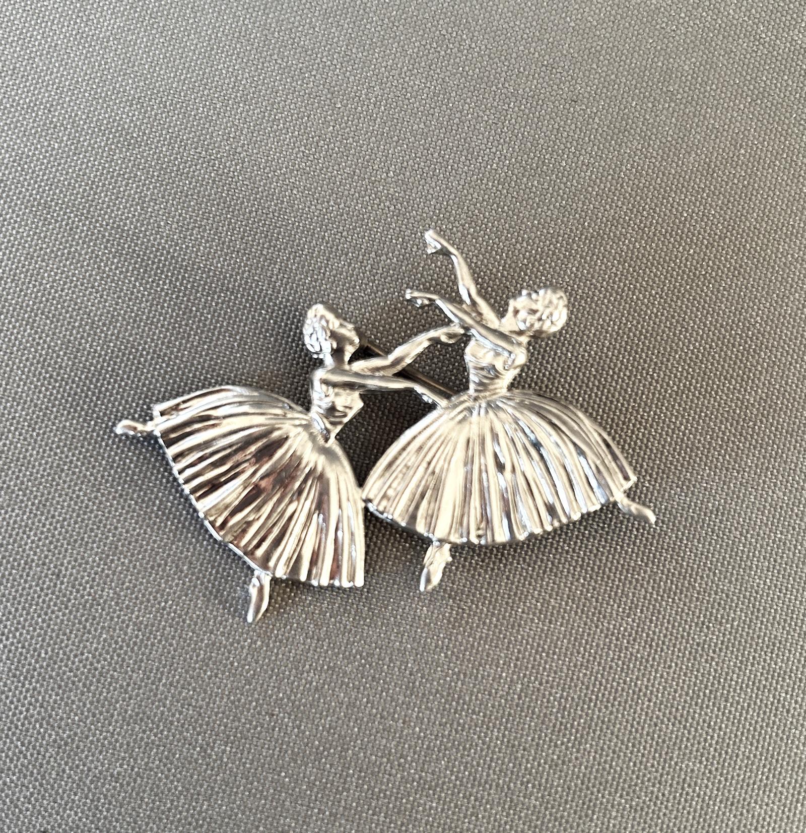 Art Deco Silver Twin Ballerina Brooch (1 of 6)