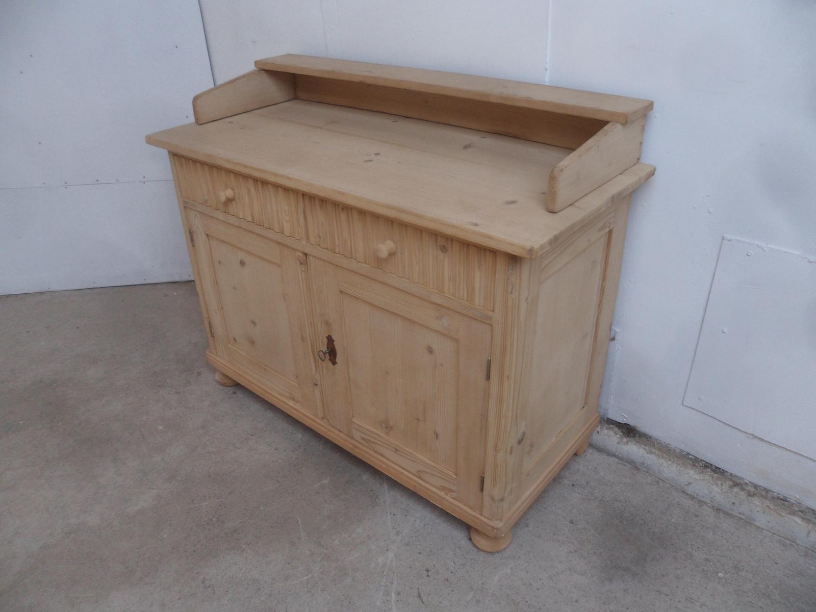 Art Deco Small Antique Pine 2 Door 2 Drawer Dresser Base to wax / paint