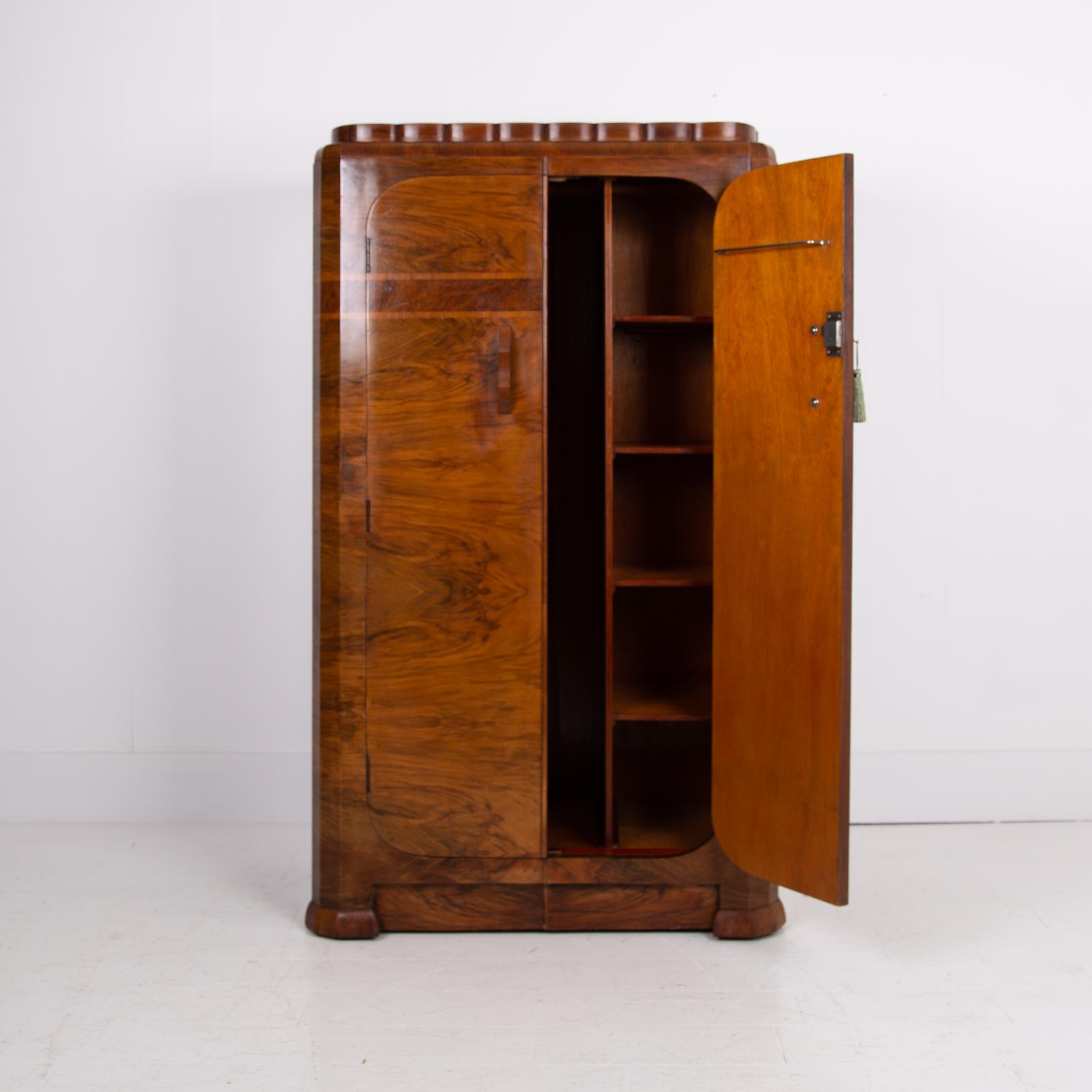 Art Deco Small Walnut Wardrobe Cabinet c.1930