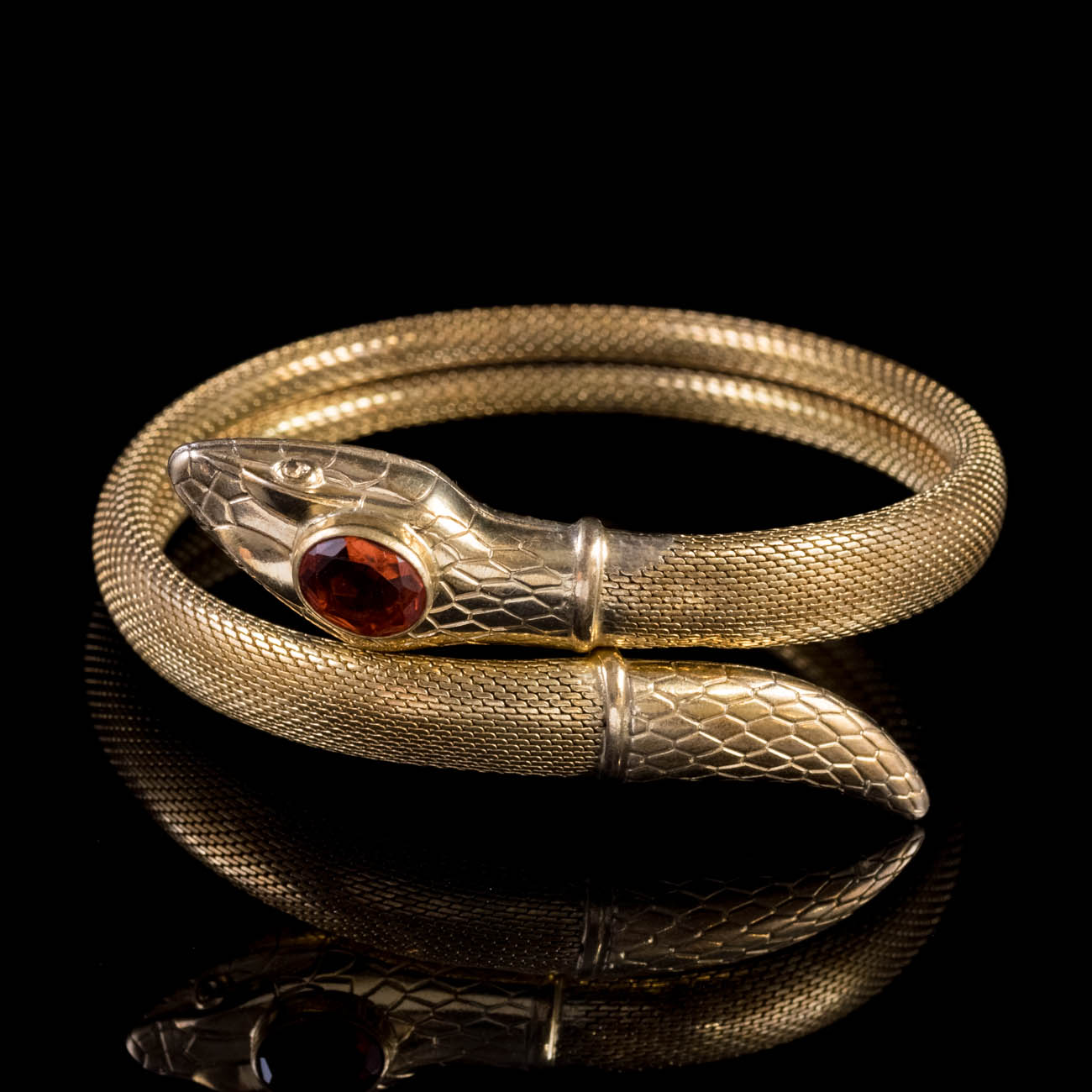 Art Deco Snake Bangle Paste Citrine 18ct Rolled Gold c.1930