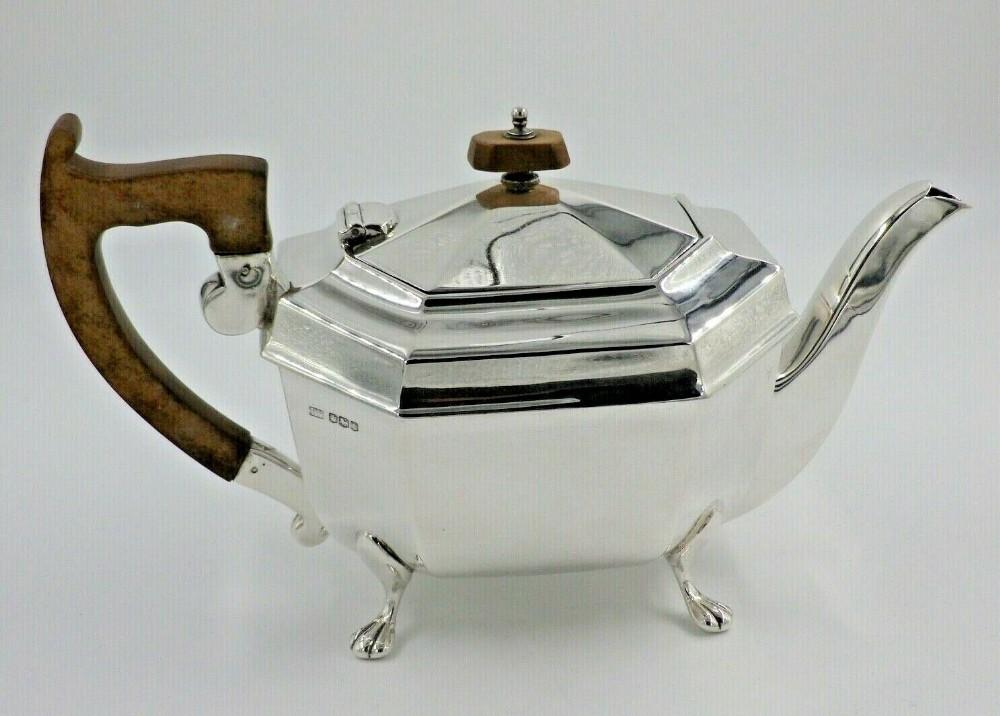 Art Deco Solid Silver Teapot Standing on Four Claw Feet