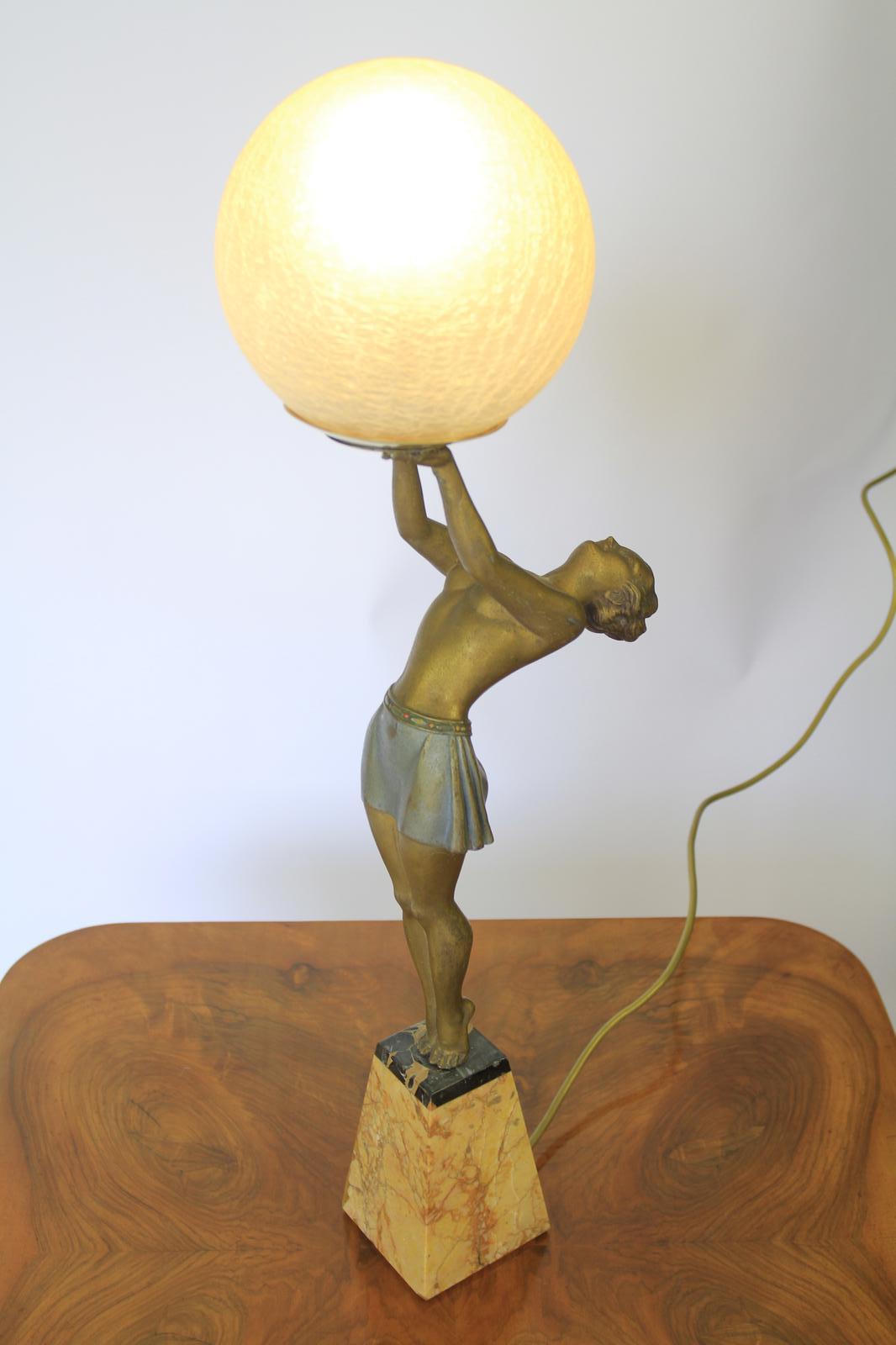 Art Deco Spelter Lady Lamp with Crackle Glaze Globe Shade