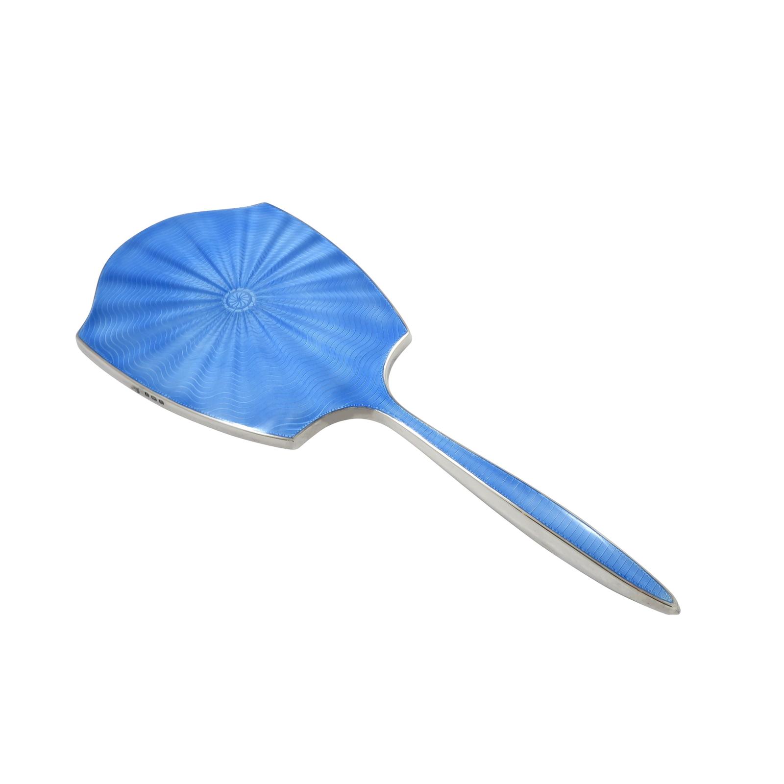 Art Deco Sterling Silver & Blue Enamel Hand Mirror 1937