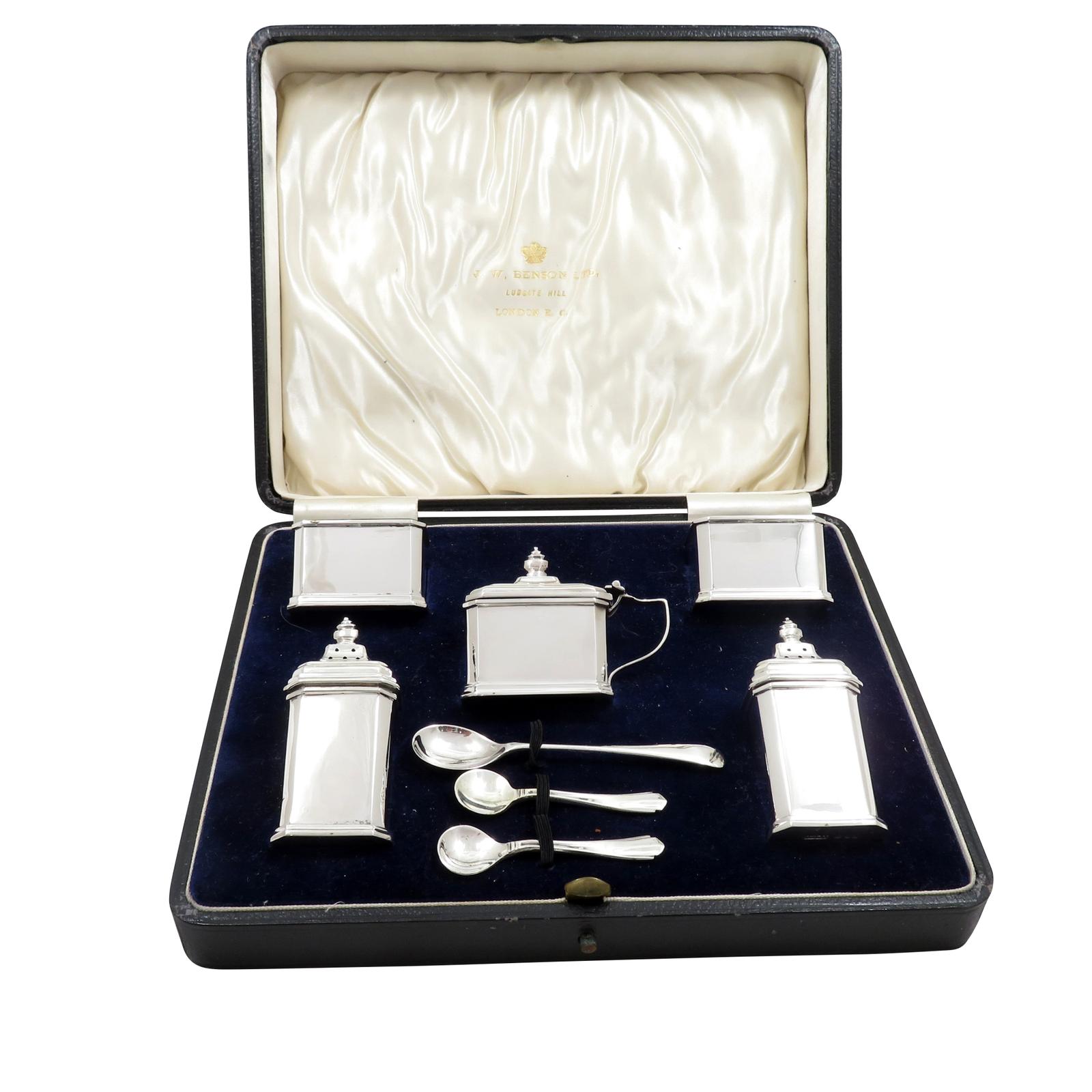 Art Deco Sterling Silver Cruet Set in Case 1931