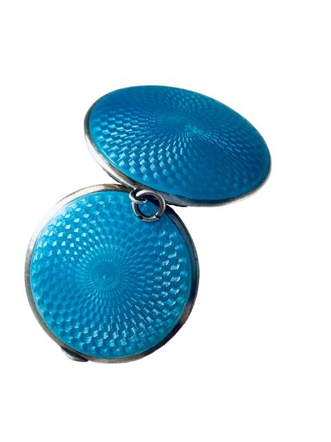 Art Deco Sterling Silver & Double Sided Guilloche Enamel Pendant Powder Compact c.1920