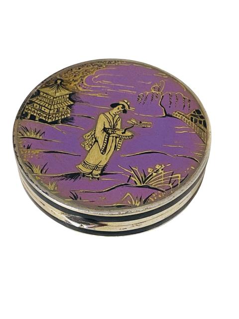 Art Deco Sterling Silver & Enamel Geisha Lady Powder Compact London Import 1926