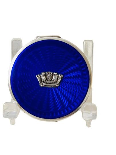 Art Deco Sterling Silver & Guilloche Enamel Naval Powder Compact Birmingham 1930