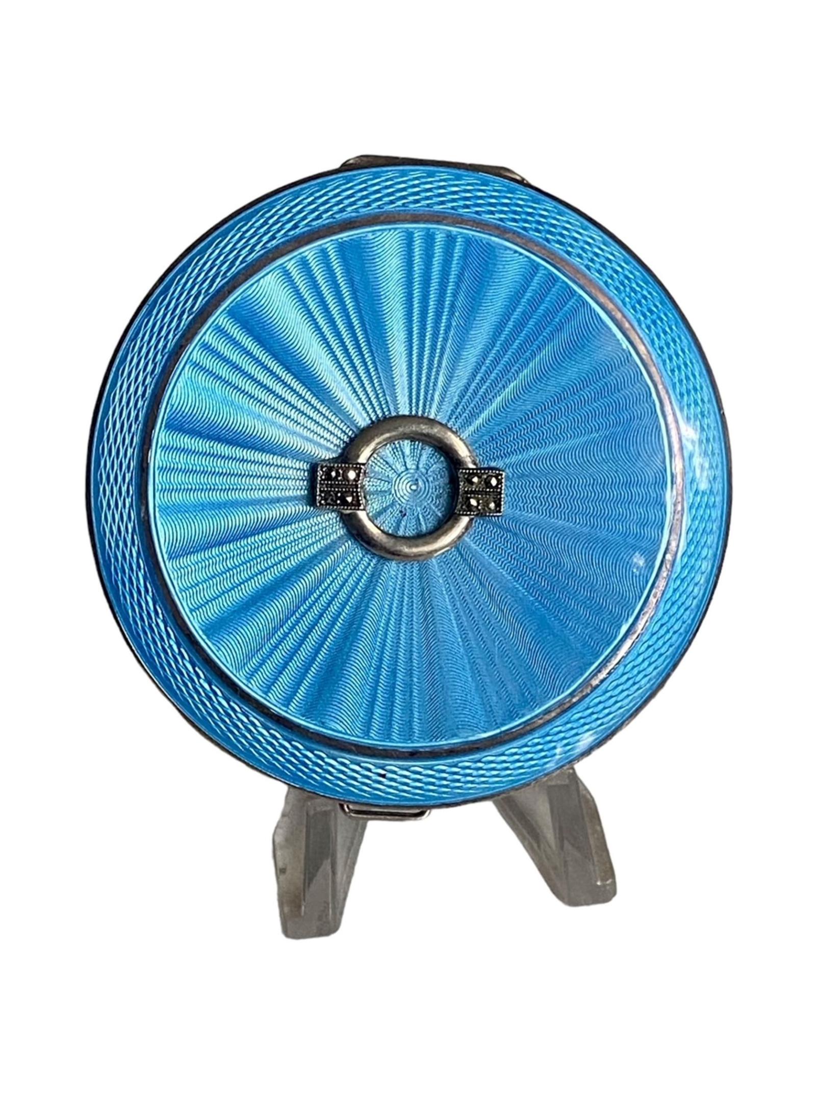 Art Deco Sterling Silver & Guilloche Enamel Powder Compact Chester 1934