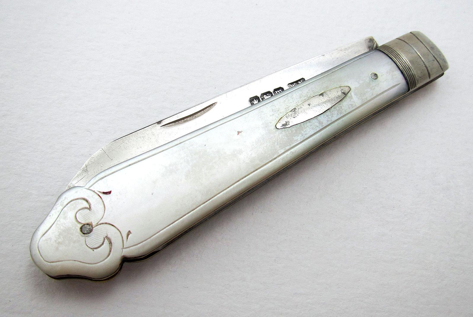 Art Deco Sterling Silver & Mother of Pearl Folding Fruit Knife / Penknife - Sheffield 1929
