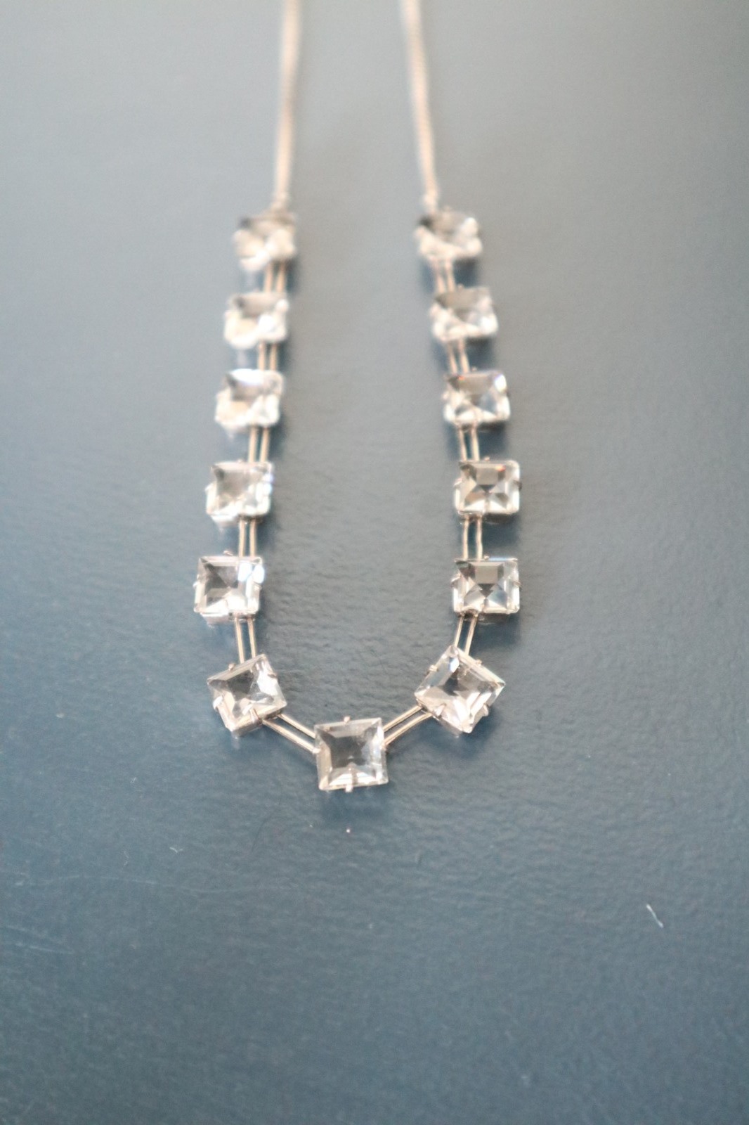 Art Deco Sterling Silver Necklace with Square Faceted Glass Crystal c.1939 (1 of 16)