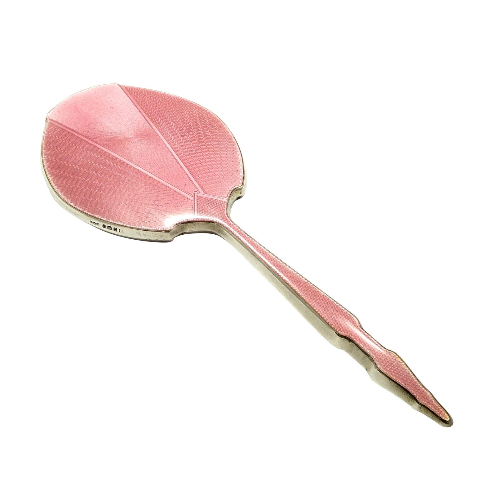Art Deco Sterling Silver & Pink Enamel Hand Mirror 1935