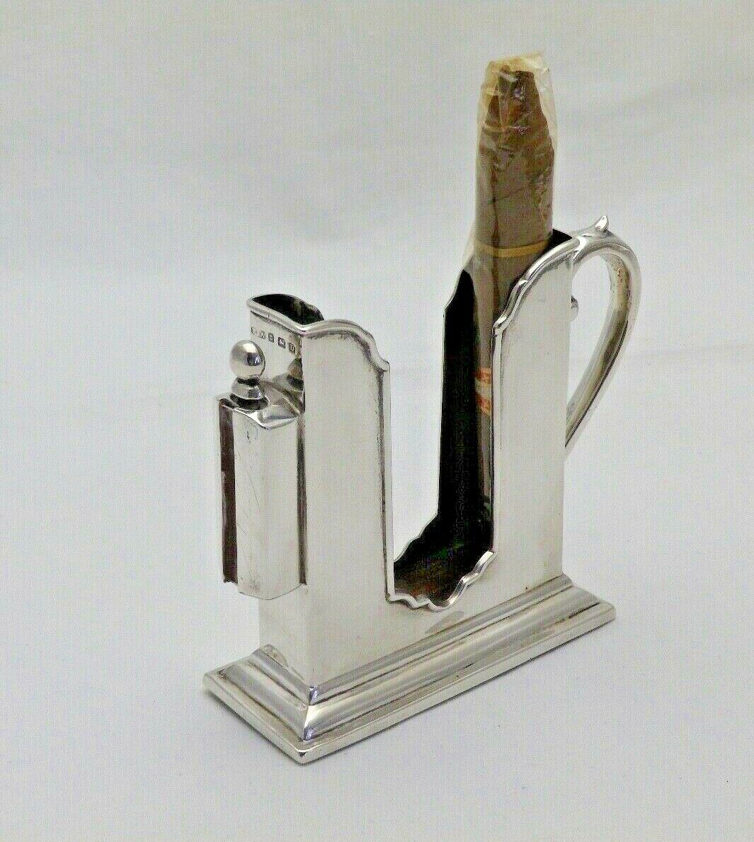 Art Deco Sterling Solid Silver Desk Cigar Stand Holder & Lighter