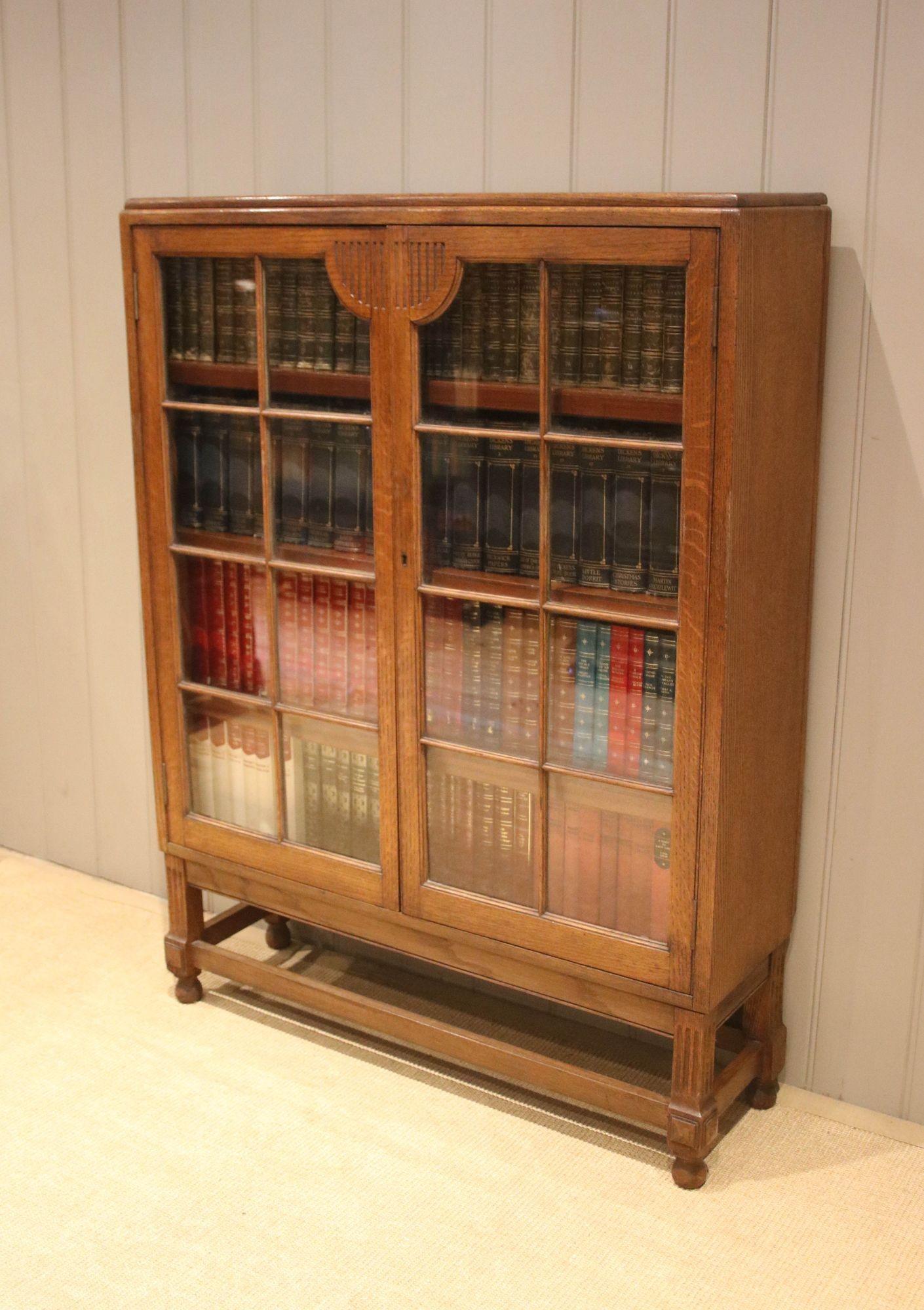 Art Deco Style Oak Glazed Bookcase (1 of 11)