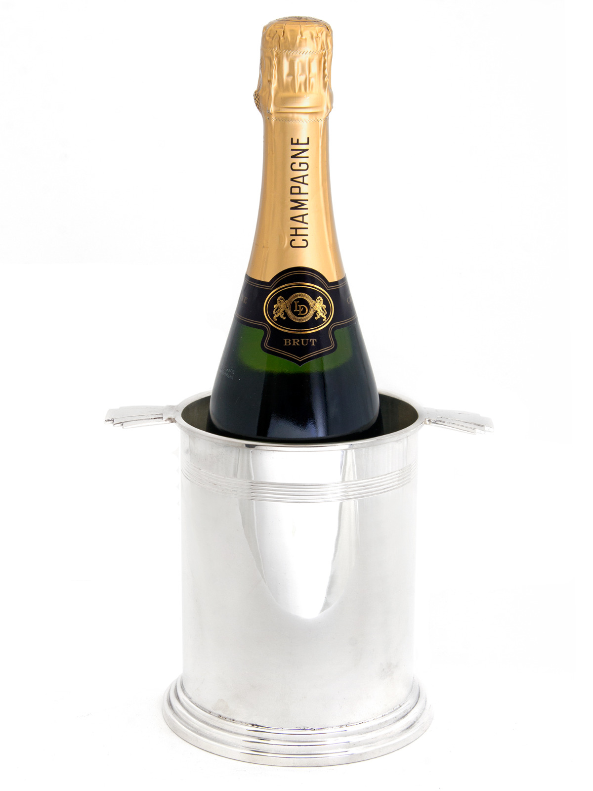 Art Deco Style Plain Silver Plate Bottle Stand with Fan Shaped Tab Handles