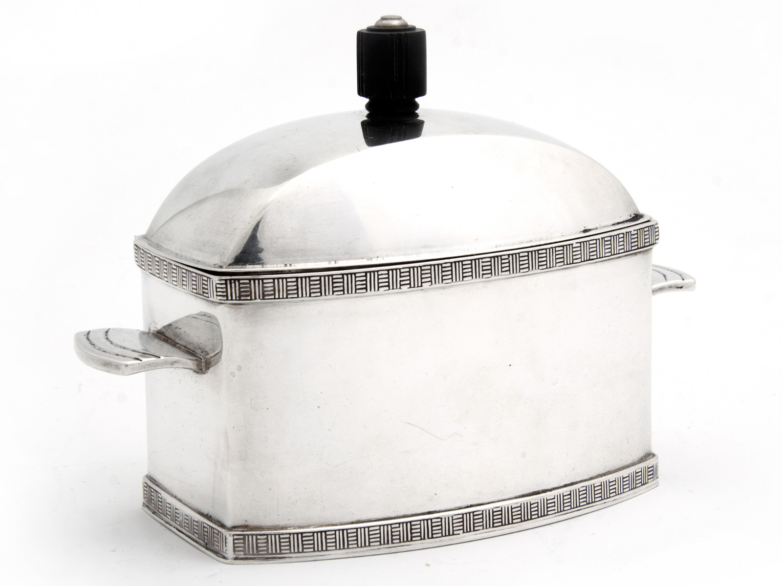 Art Deco Style Silver Plated Box with Tabbed Handles & Domed Lid (1 of 1)