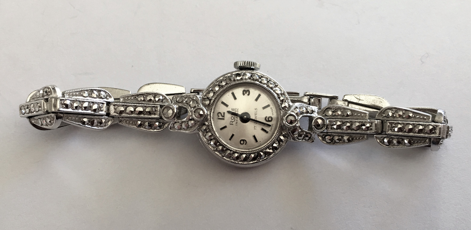 Art Deco Style Swiss Made ‘Rone’ Hallmarked Silver & Marcasite Ladies Cocktail Watch 1968