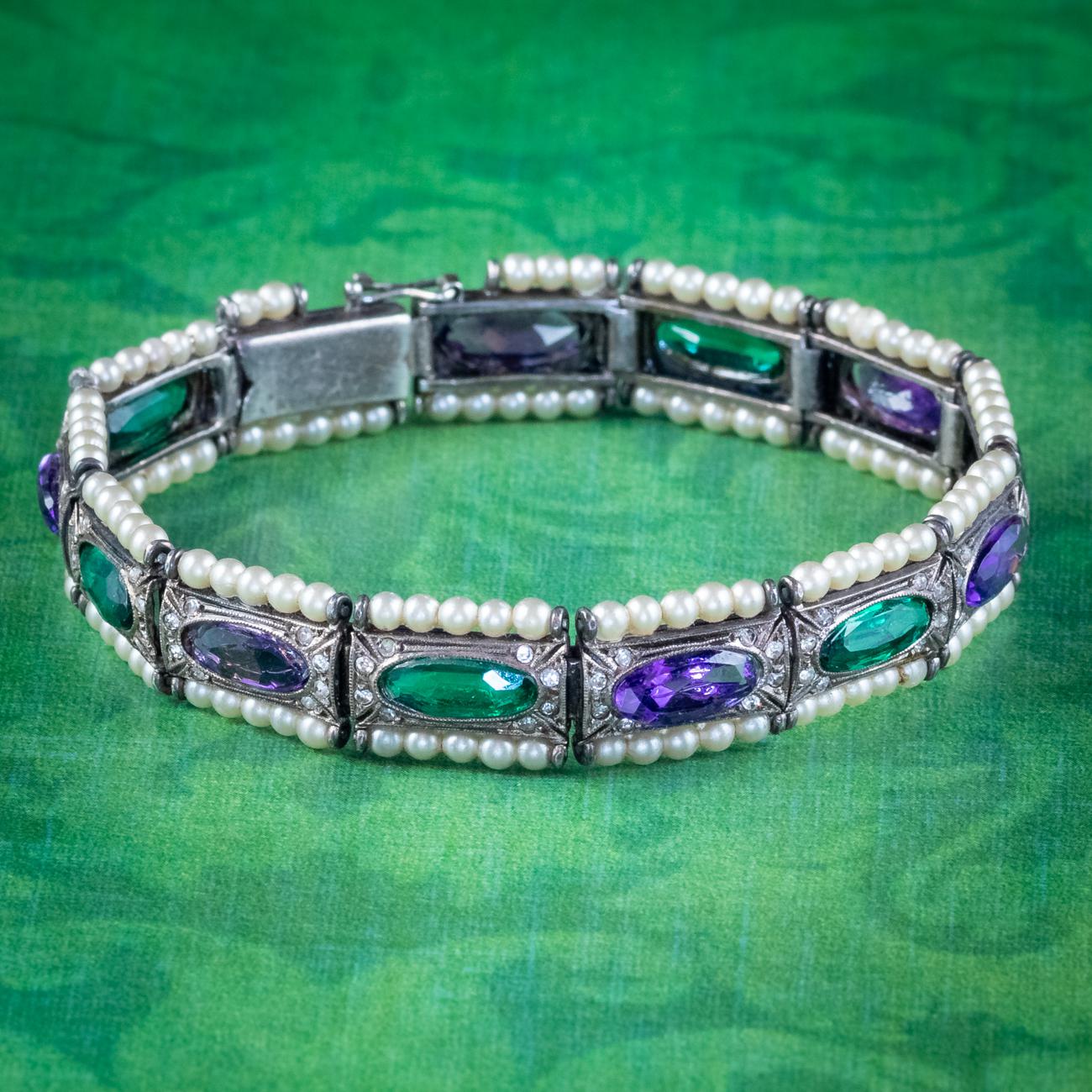 Art Deco Suffragette Pearl Paste Bracelet Sterling Silver c.1920