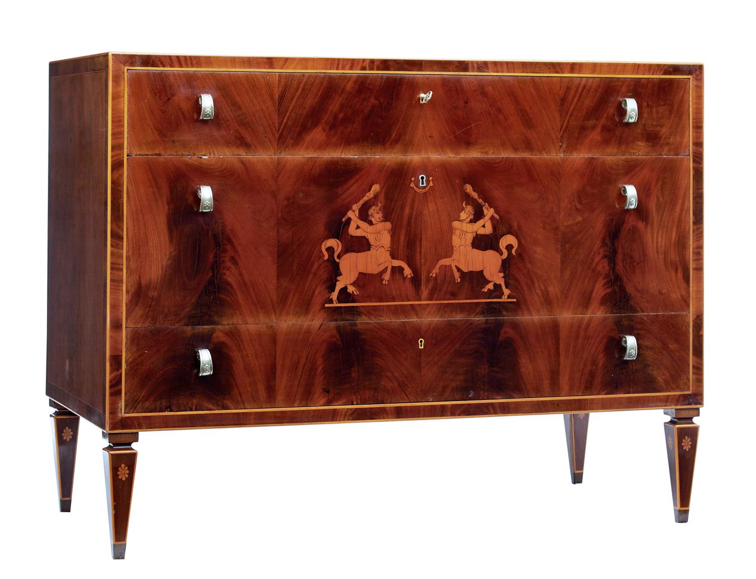 Art Deco Swedish Flame Mahogany Inlaid Chest of Drawers